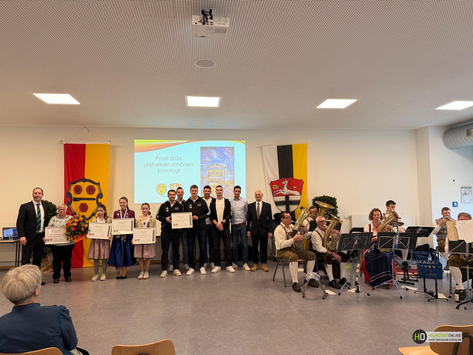 Zum traditionellen Neujahrsempfang und auch gleichzeitig zu seinem letzten Neujahrsempfang in Helmstadt (aufgrund von Corona nur 4 Mal in seiner 6-jährigen Amtszeit) lud Bürgermeister Klembt die Bürgerinnen und Bürger zu einem geselligen Nachmittag ein. In angenehmer Atmosphäre wurde bei einem Glas Sekt auf das neue Jahr angestoßen und es blieb viel Zeit für persönliche Gespräche und Begegnungen. Neben der Geselligkeit sorgte Bürgermeister Klembt auch für spannende Neuigkeiten: In seiner Ansprache deckte er die Ergebnisse seiner jüngsten Abstimmung auf Instagram auf und informierte über kommende Projekte in der Gemeinde. Ein besonderer Höhepunkt war die Ankündigung, dass das Zamesloch in naher Zukunft aufgebuddelt wird – ein Vorhaben, das bereits jetzt für reges Interesse und viele Gespräche unter den Gästen sorgte. Der Neujahrsempfang zeigte einmal mehr, wie wichtig der persönliche Austausch in der Gemeinde ist und machte Lust auf ein ereignisreiches Jahr. Den Ausschank übernahmen die Buben der Trachtengruppe. Für die musikalische Umrahmung sorgten die Helmstadter Musikanten.