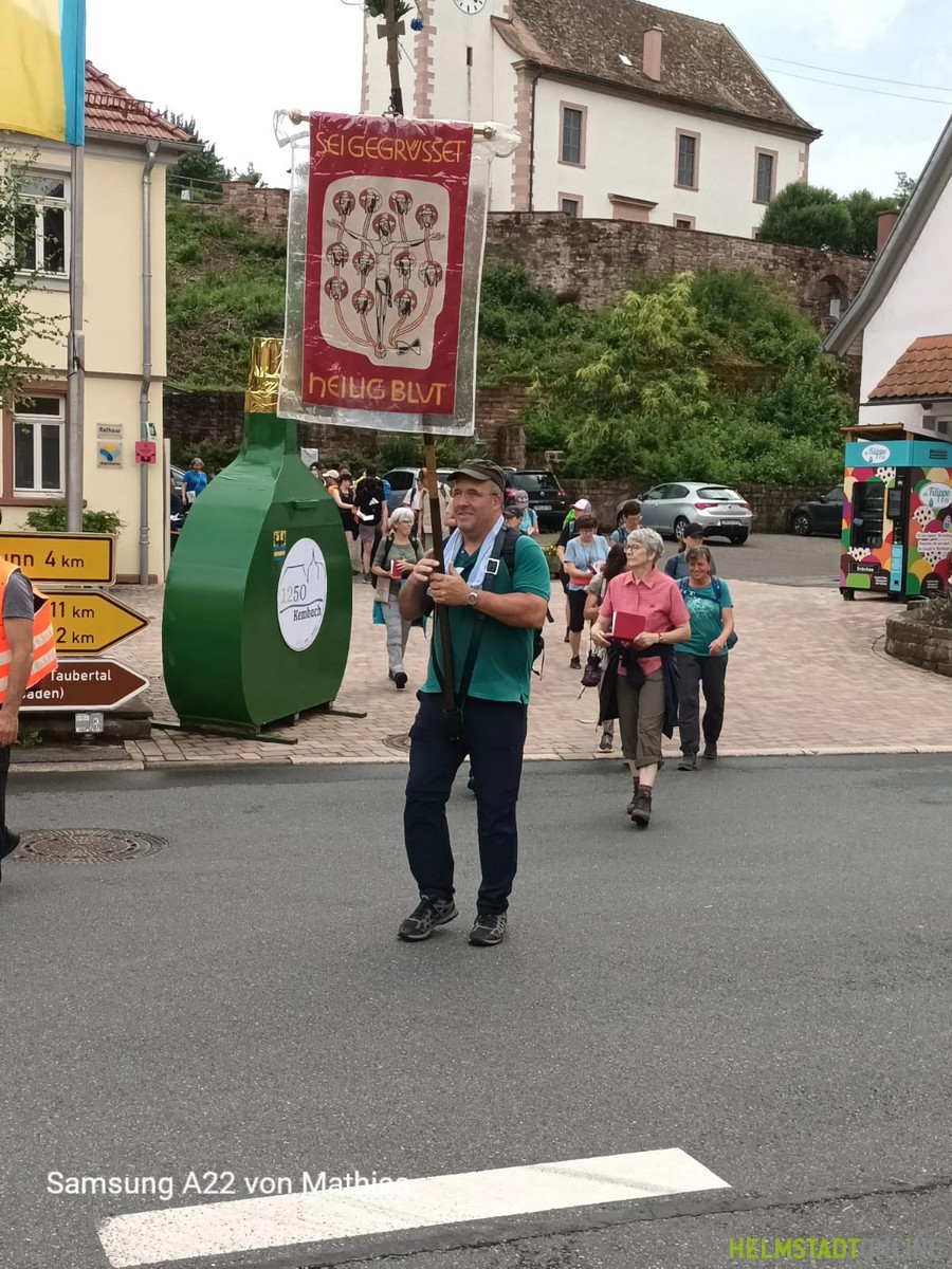 Am Samstag, den 14.06.2025 um 2:30 Uhr starteten von der Helmstadter Pfarrkirche 48 Pilger zur Fußwallfahrt zum Heiligen Blut nach Walldürn. Entgegen der allgemeinen Tendenz konnten wir in diesem Jahr 8 neue Pilger/innen begrüßen.