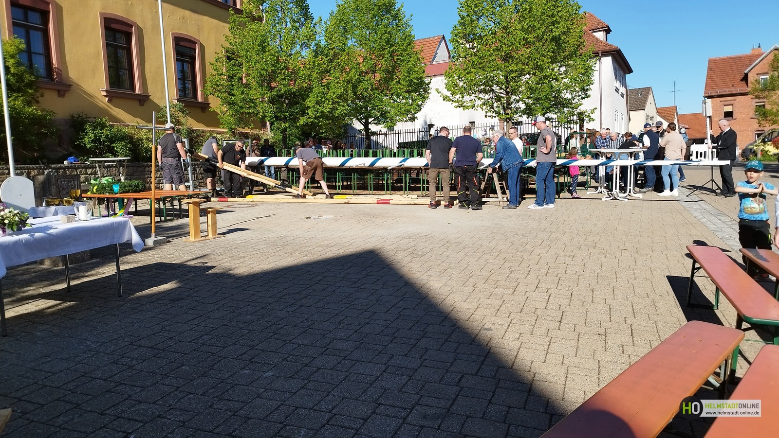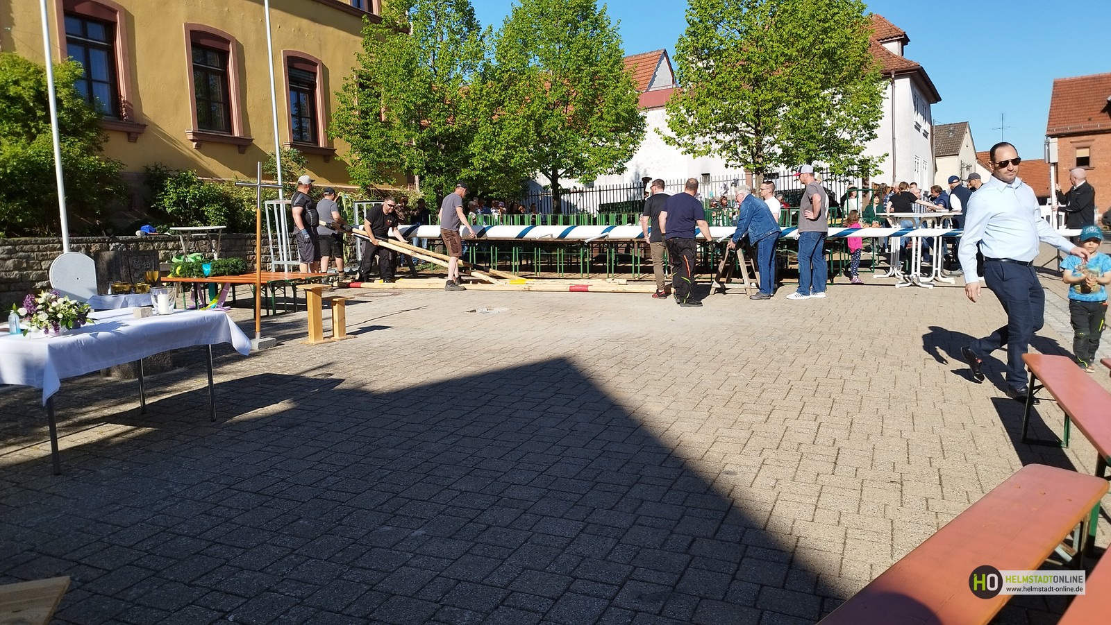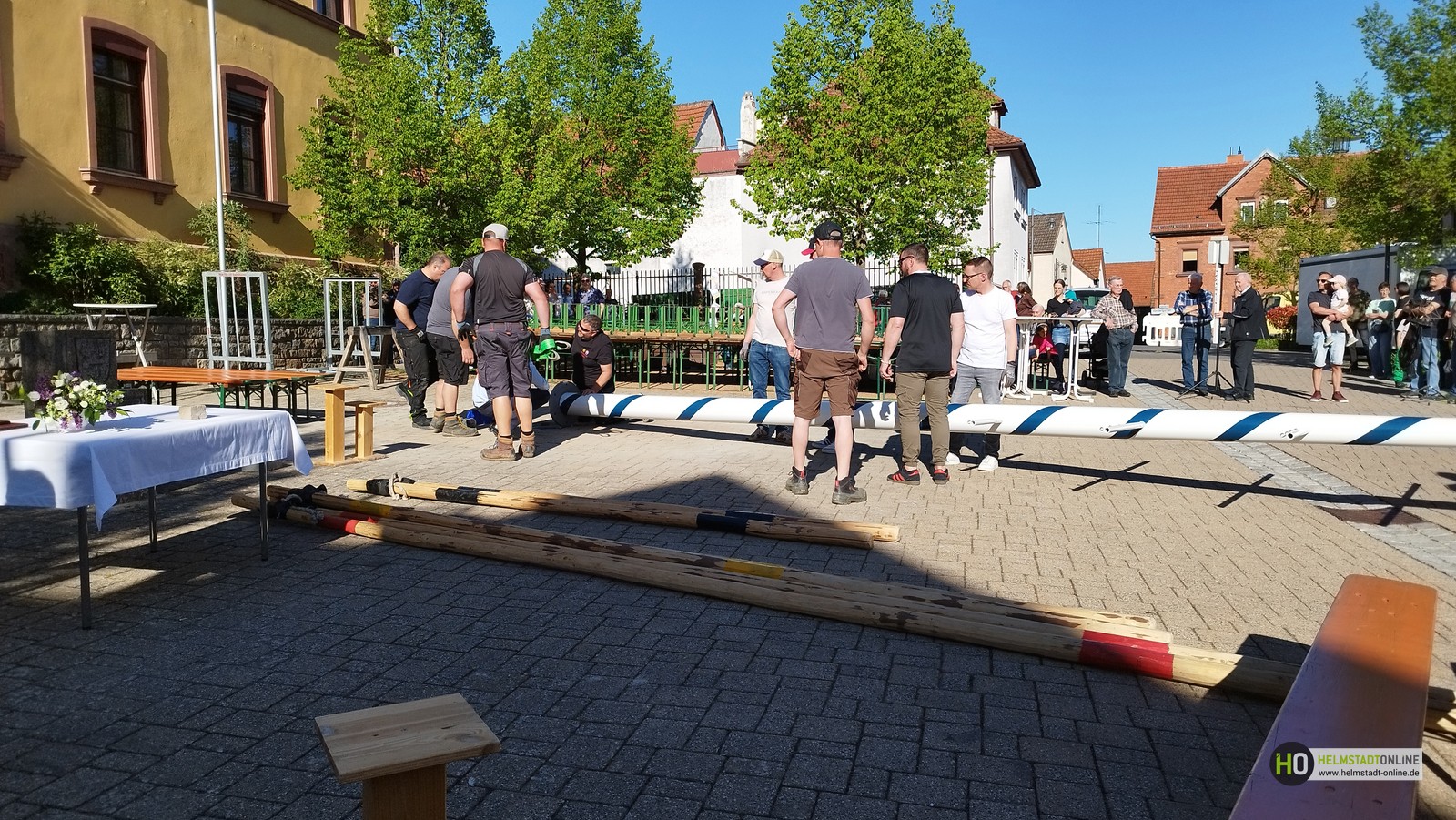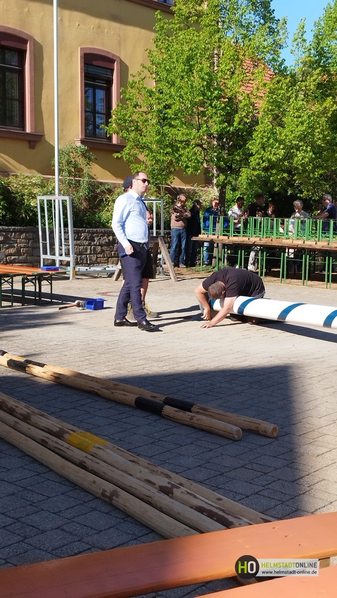 Erleichtert zeigten sich Bürgermeister Klembt und Melo-Vorstand Kinner, dass das Aufstellen des Maibaums nach anfänglichen Startschwierigkeiten, siehe HO-Artikel "Maibaumfest – alles wie immer… fast", schließlich doch noch rechtzeitig gelungen ist.