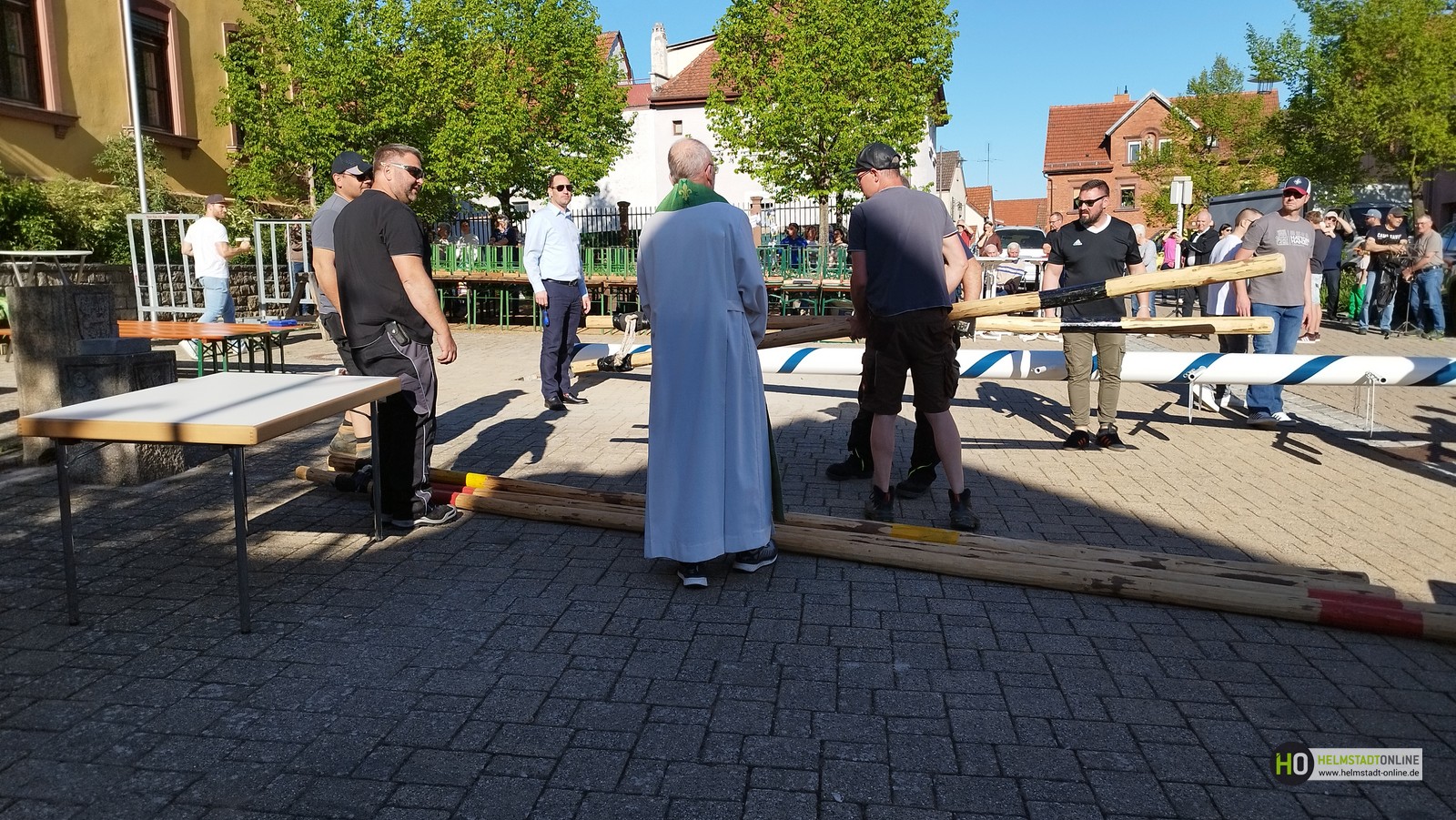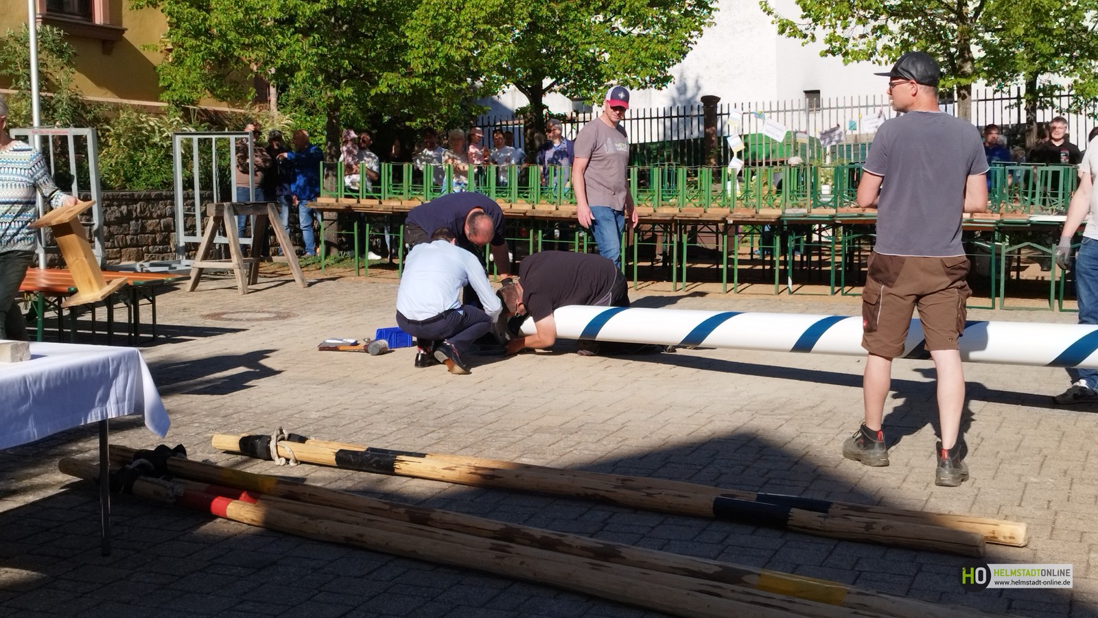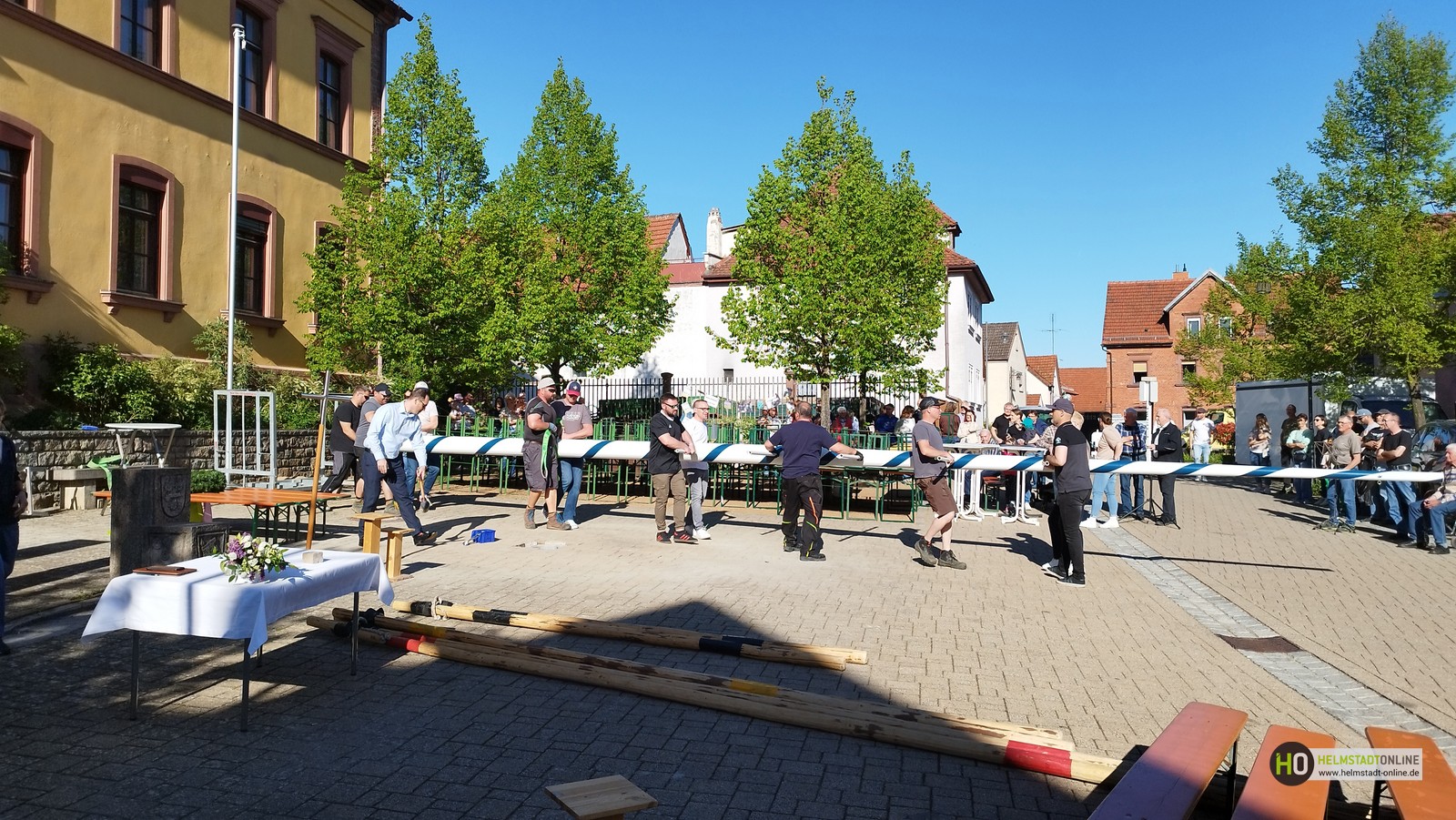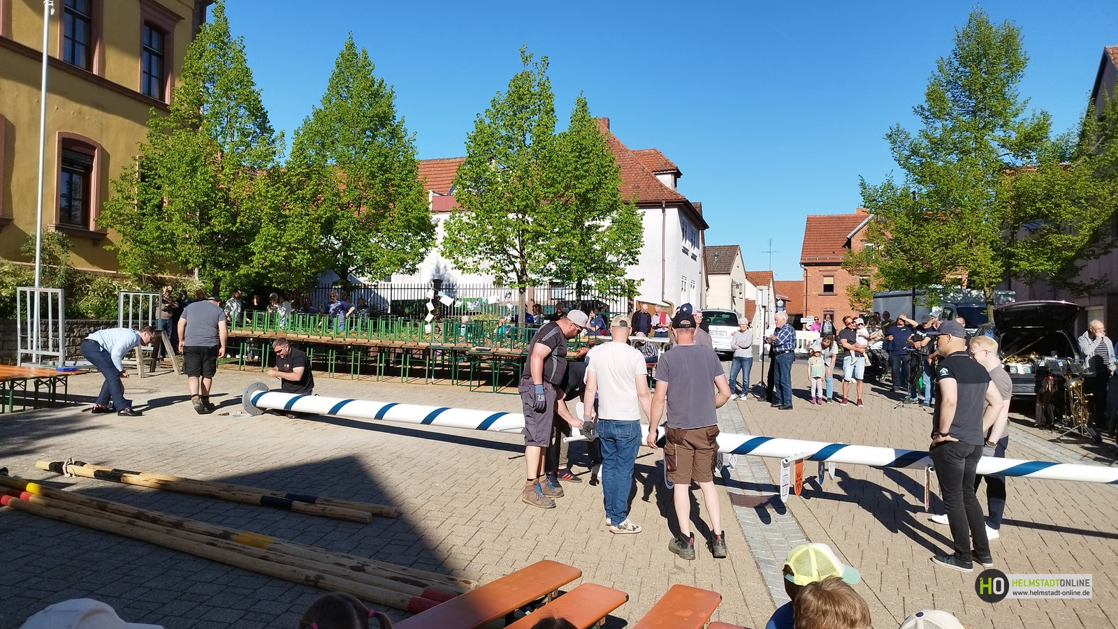 Erleichtert zeigten sich Bürgermeister Klembt und Melo-Vorstand Kinner, dass das Aufstellen des Maibaums nach anfänglichen Startschwierigkeiten, siehe HO-Artikel "Maibaumfest – alles wie immer… fast", schließlich doch noch rechtzeitig gelungen ist.