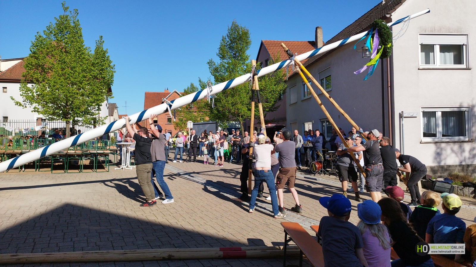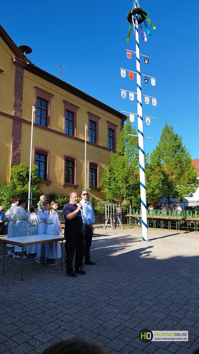 Ein herzlicher Dank gilt der Firma Blank sowie dem Bauhof, die maßgeblich zur Umsetzung und Aufstellung beigetragen haben. Auch die Roth-Crew unterstützte tatkräftig beim Aufstellen des Maibaums.