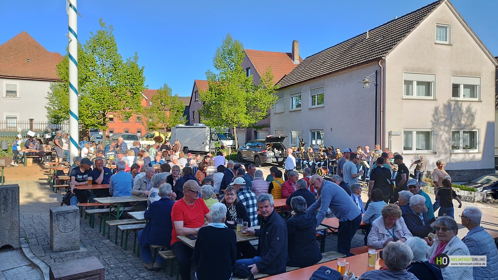 Beim diesjährigen Maibaumfest zeigte sich das Wetter von seiner besten Seite: Strahlender Sonnenschein begleitete die Feierlichkeiten rund um den neuen Maibaum, der das Ortsbild nun wieder schmückt. Besonders ins Auge fallen die neuen Tafeln der örtlichen Vereine, die dem Maibaum ein modernes und zugleich traditionelles Erscheinungsbild verleihen.