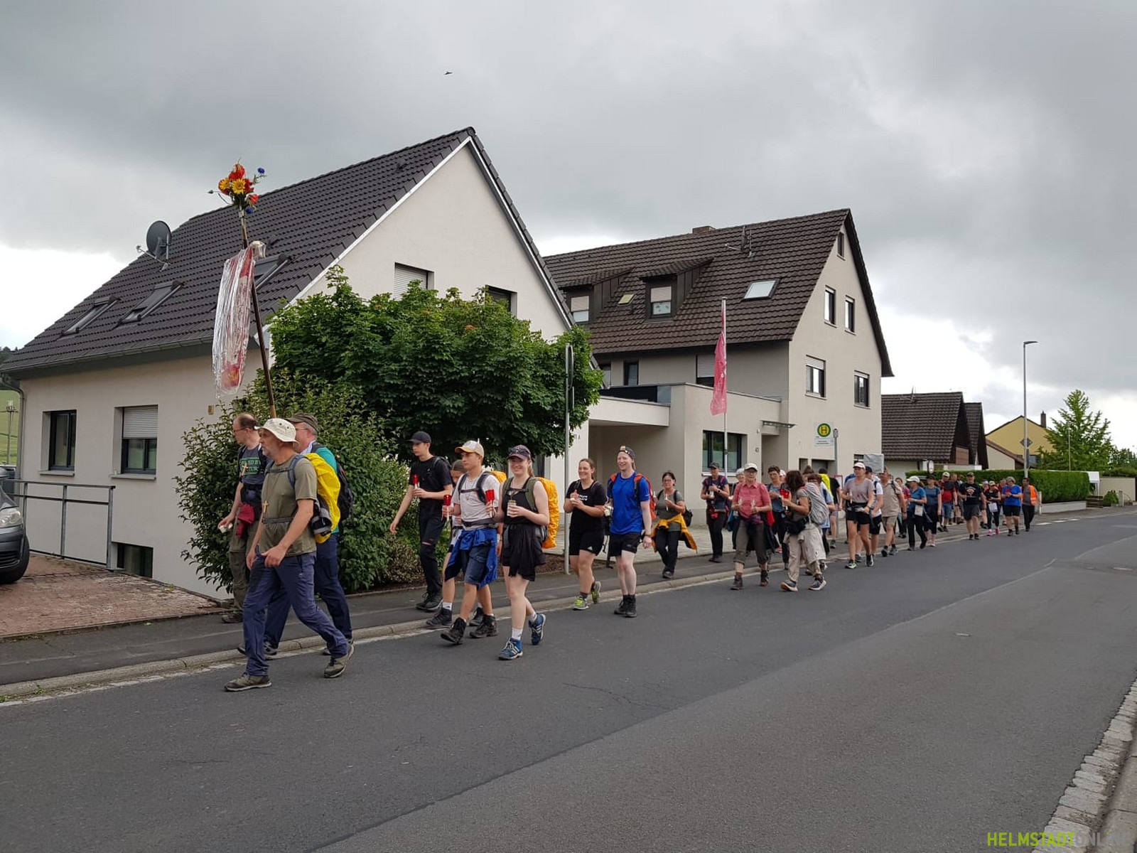 Um 13:00 Uhr wurde unsere Pilgergruppe verabschiedet und wir traten den etwa 15 km langen Heimweg, der von einem heftigen Regenguss begleitet wurde, nach Helmstadt an. Am Anger wurden wir von Pfarrer Grönert und einigen Ministranten um 18:00 Uhr erwartet, zur Kirche geleitet und erhielten den Abschlusssegen der diesjährigen Wallfahrt.