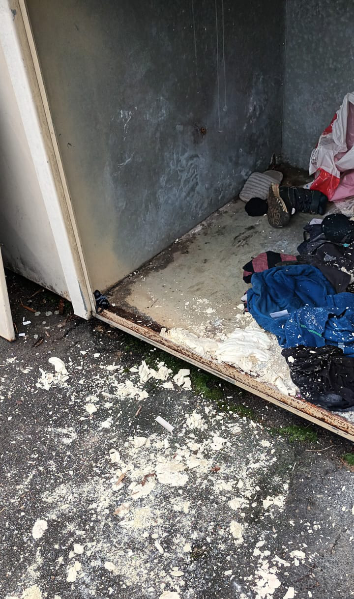 Hier sieht man das ganze Ausmaß nach der Leerung der Container. Falls jemand eine Beobachtung macht, wenn sich Personen an den Containern zu schaffen machen, um ihren Müll zu entsorgen, bitte bei einem Vorstandsmitglied des Frauenbundes oder bei der Polizei melden.