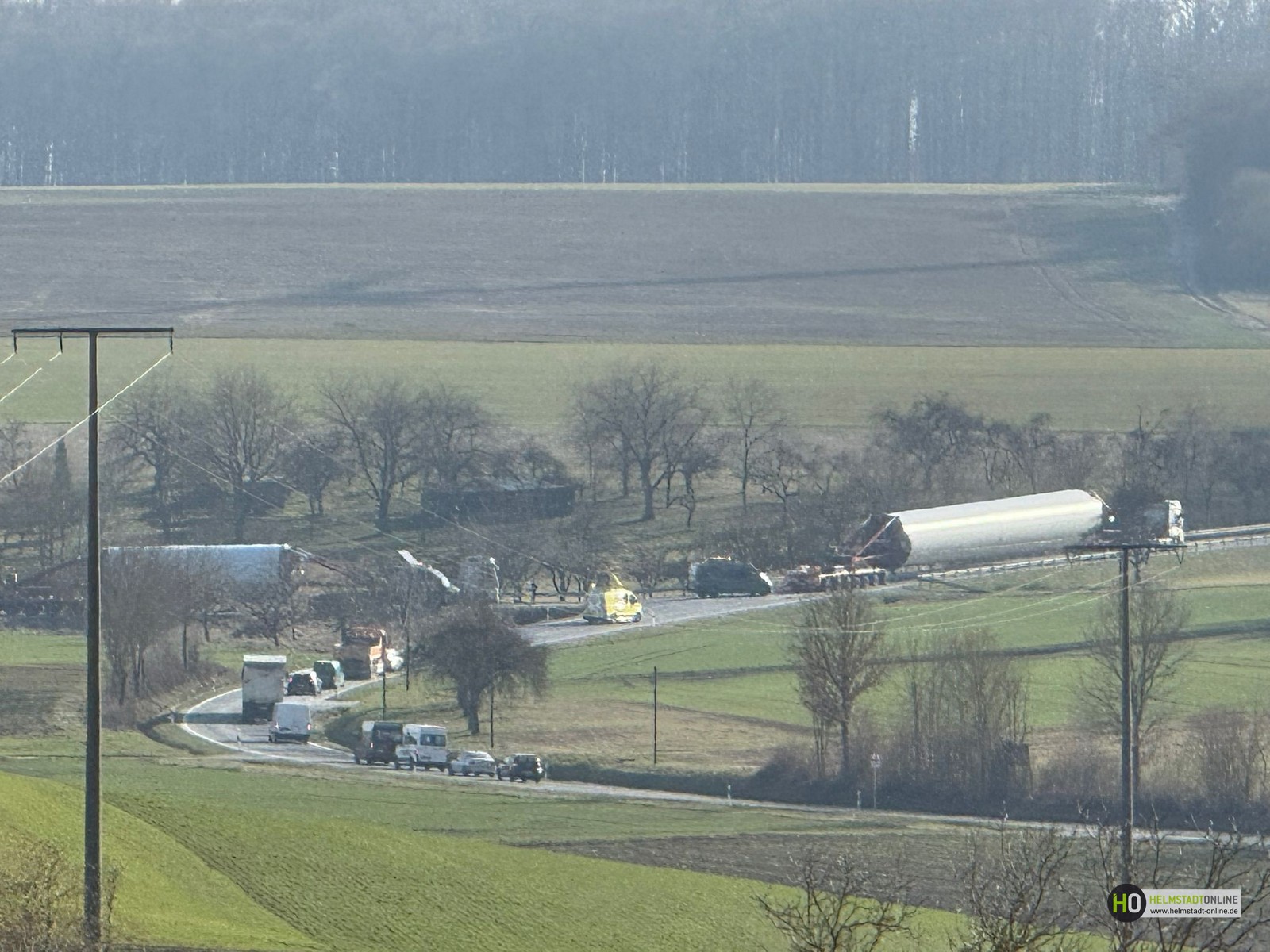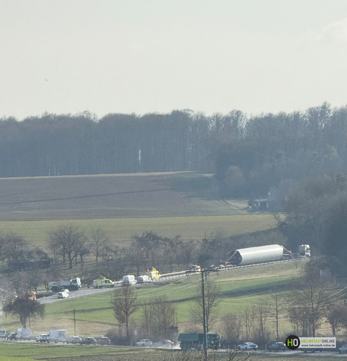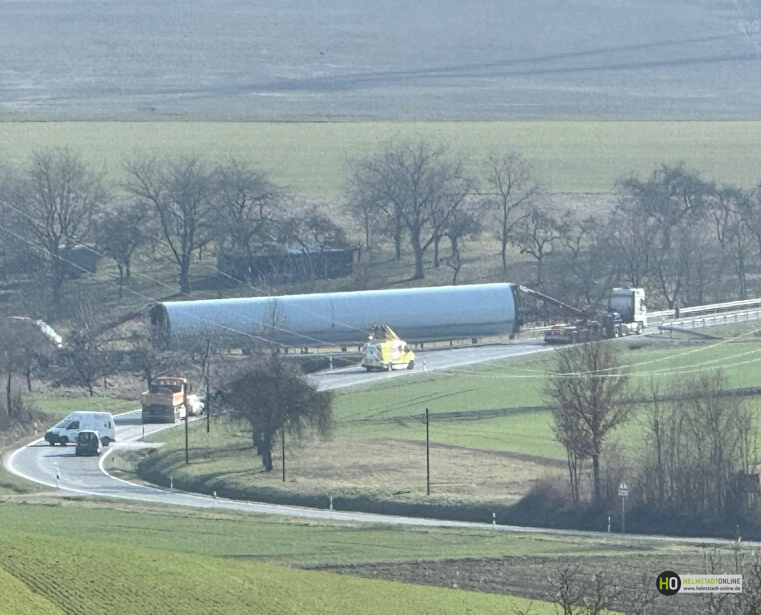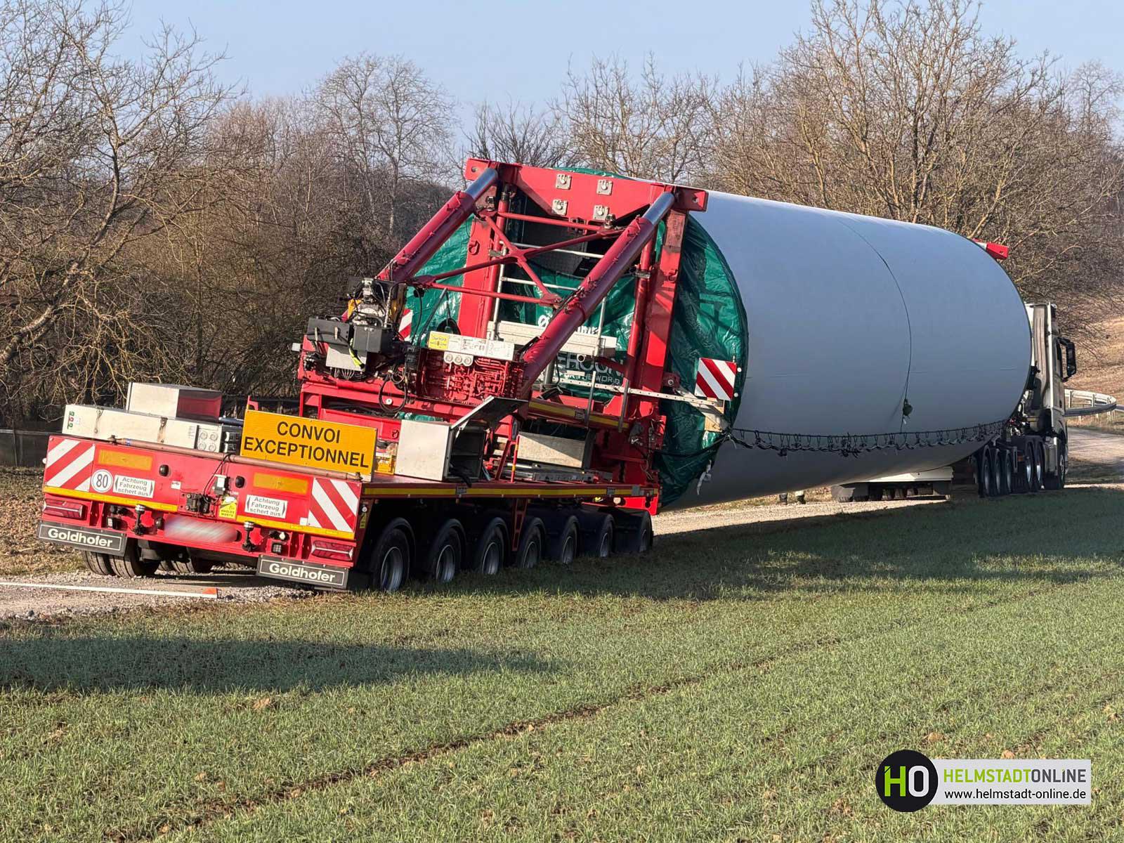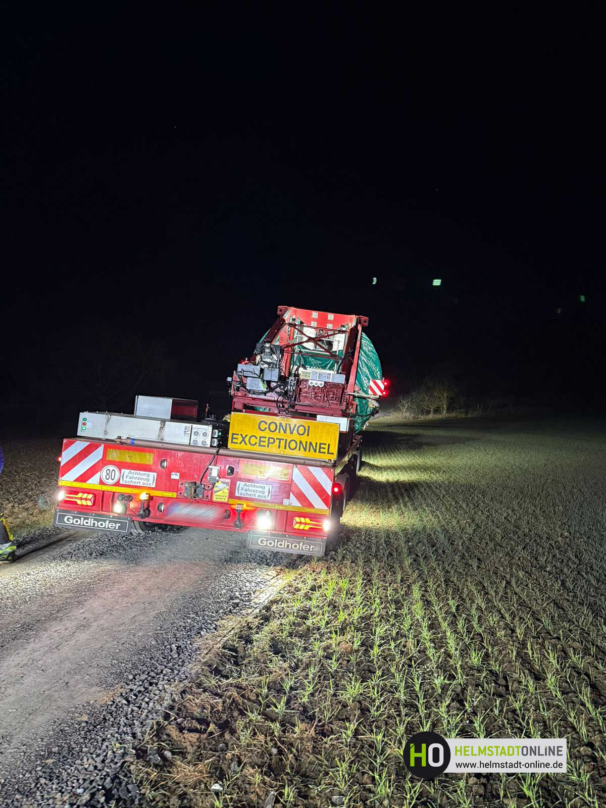 Das Gesamtgewicht beläuft sich auf rund 120 Tonnen und konnte aufgrund der Bodenverhältnisse nicht weiter bewegt werden. Trotz sorgfältiger Planung und Vorbereitung führten die aktuellen Bedingungen dazu, dass das Spezialfahrzeug die Zufahrt nicht vollständig passieren konnte. Zusätzlich stehen zwei weitere Schwerlasttransporte mit Anlagenteilen in der Warteschlange und können ihre Fahrt zum Montageplatz nicht fortsetzen. Aktuell wird geprüft, ob kurzfristig ein Kranstellplatz errichtet werden kann. Ein solcher Kranplatz würde es ermöglichen, das Bauteil mithilfe eines Mobilkrans zu entladen oder umzusetzen, um den Transport fortzuführen.