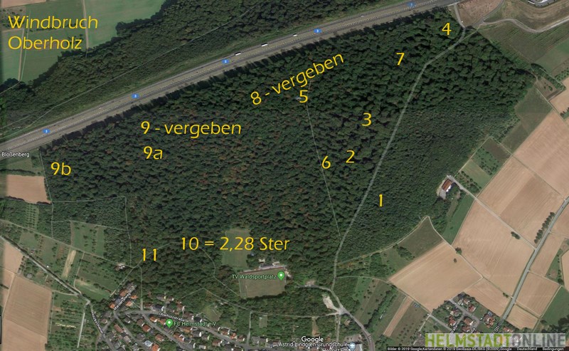 Durch Unwetter wurden im vergangenen Jahr mehrere Bäume entwurzelt oder sind umgebrochen. Diese werden aktuell aufgearbeitet und als Brennholz vergeben. Die Karten werden nach Stand der Arbeit aktualisiert. Die Vergabe erfolgt durch Albert Rappelt.