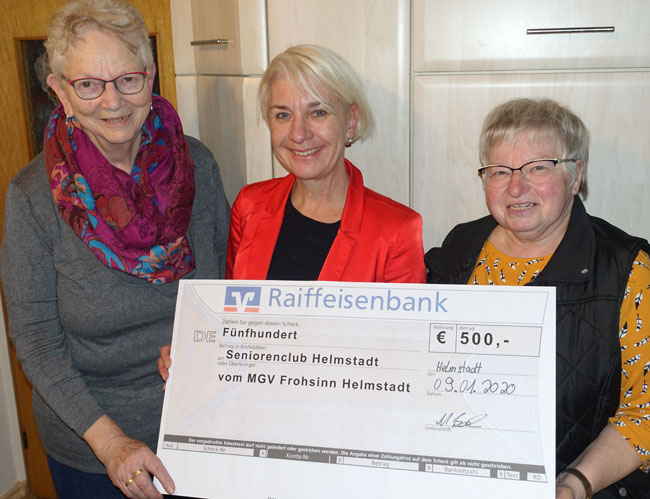 Lena Becker, Präsidentin des MGV Frohsinn, machte dabei deutlich, dass man die Hälfte des Spendenerlöses aus dem Vorweihnachtlichen Konzert im letzten Jahr in der Pfarrkirche einem guten Zweck im Ort zuführen wollte. Und da fand der Vorschlag “Seniorenclub“ sofort eine breite Zustimmung.