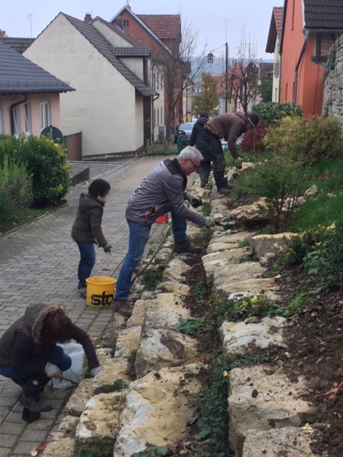 Im Rahmen des Projektes wurde im November 2019 nochmals eine Pflege- und Pflanzaktionam inneren Friedhof im Fuchsenpfad durchgeführt. Es wurde gejätet, Beikräuter und Gras entfernt, unzählige Stauden, Sträucher und Blumen gepflanzt. Viele fleißige Helfer sorgten dafür, dass die Aktion vor Sonnenuntergang erfolgreich beendet werden konnte und wurden dann mit heißem Kaffee und Tee, mit Kuchen und belegten Brötchen für ihren Einsatz belohnt. An dieser Stelle danke ich nochmals allen Helfern, welche tatkräftig angepackt oder mit Verpflegung zur Stärkung der Helfer beigetragen haben.