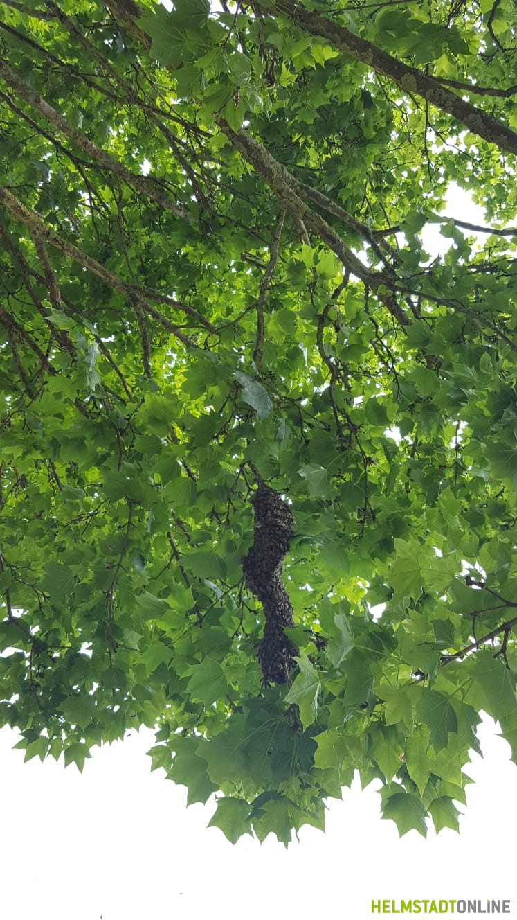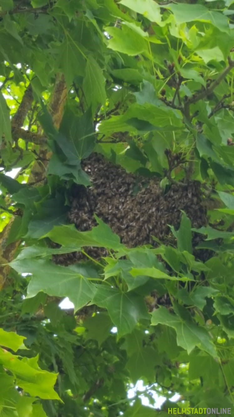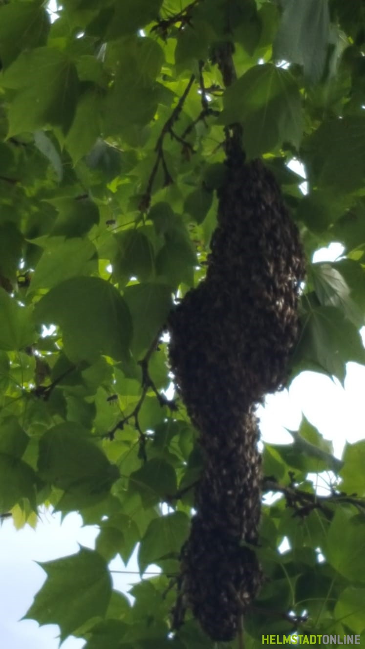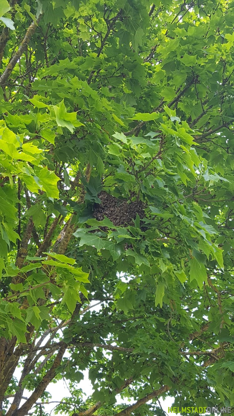 Am Freitag ließ sich ein Bienenschwarm im Baum über der Seilbahn am unteren Spielplatz in Helmstadt nieder. Nach Rücksprache mit unserem Marktgemeinderat Harald Lurz (Imker) geht von den schwärmenden Bienen keine Gefahr aus solange diese in Frieden gelassen werden. Sehr wahrscheinlich ziehen diese bald weiter.