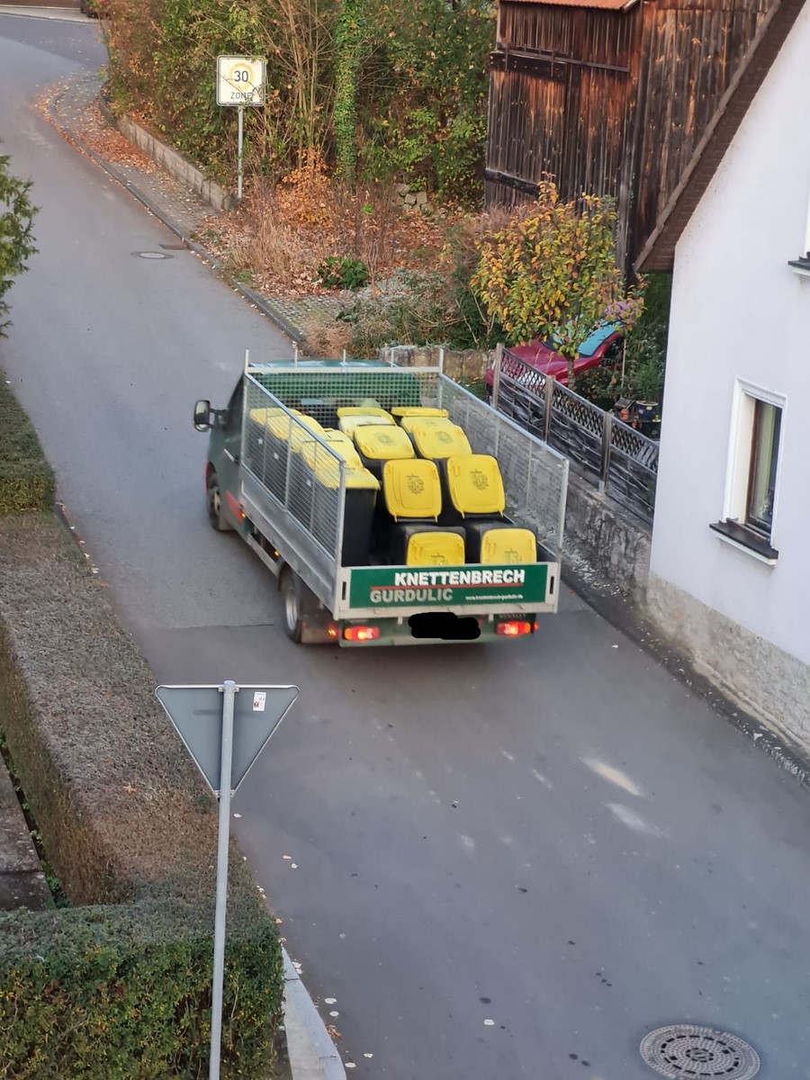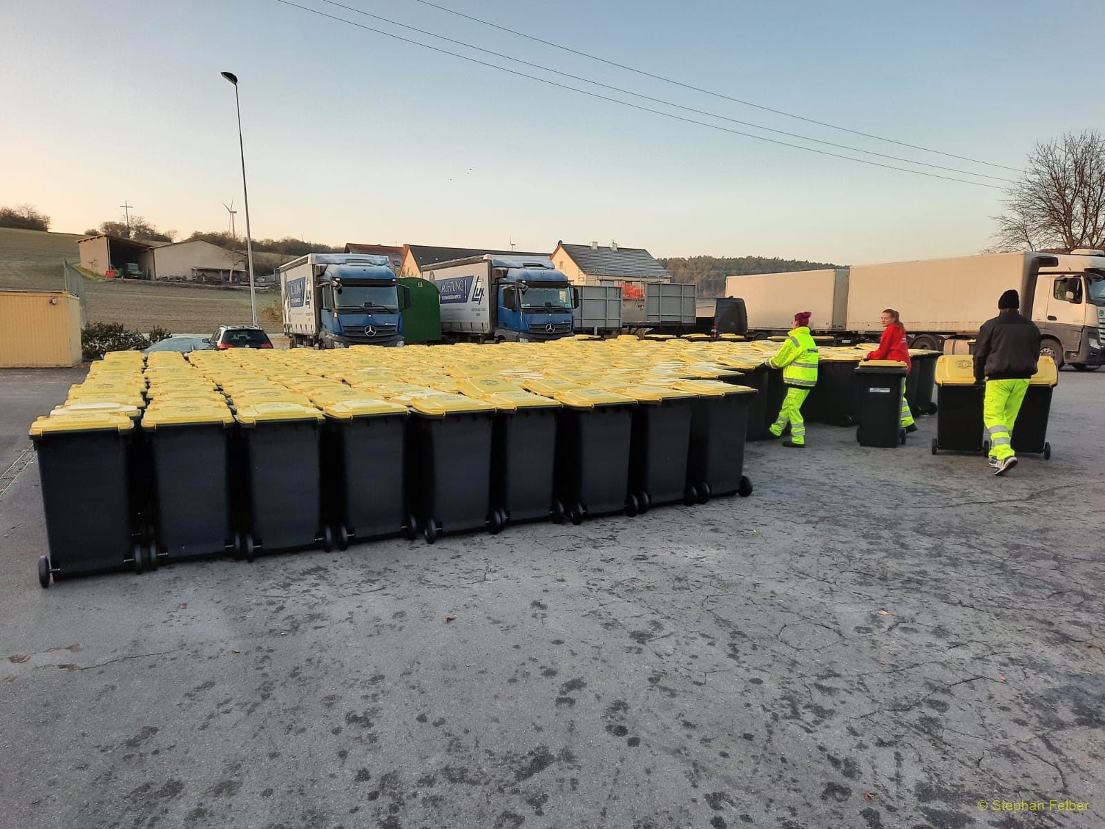 Gelbe Tonnen geliefert Details News 06. November 2020 Freitag wurden vier Container mit gelben Tonnen geliefert. Am Samstag früh sind die Tonnen an die Haushalte ausgeliefert worden.