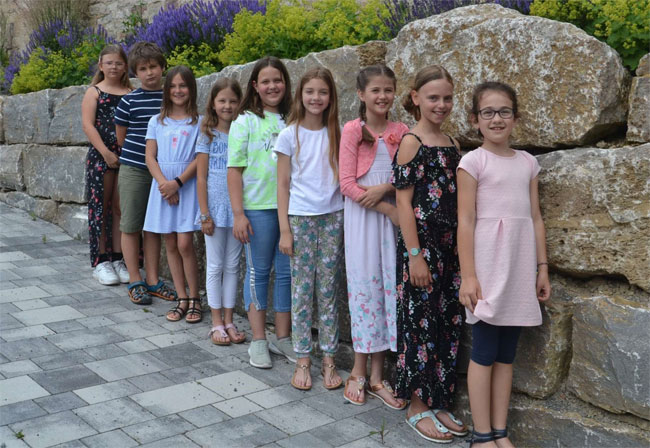 Erste heilige Kommunion in Helmstadt am 11.07.2021. Es freuen sich die Kommunionkinder: