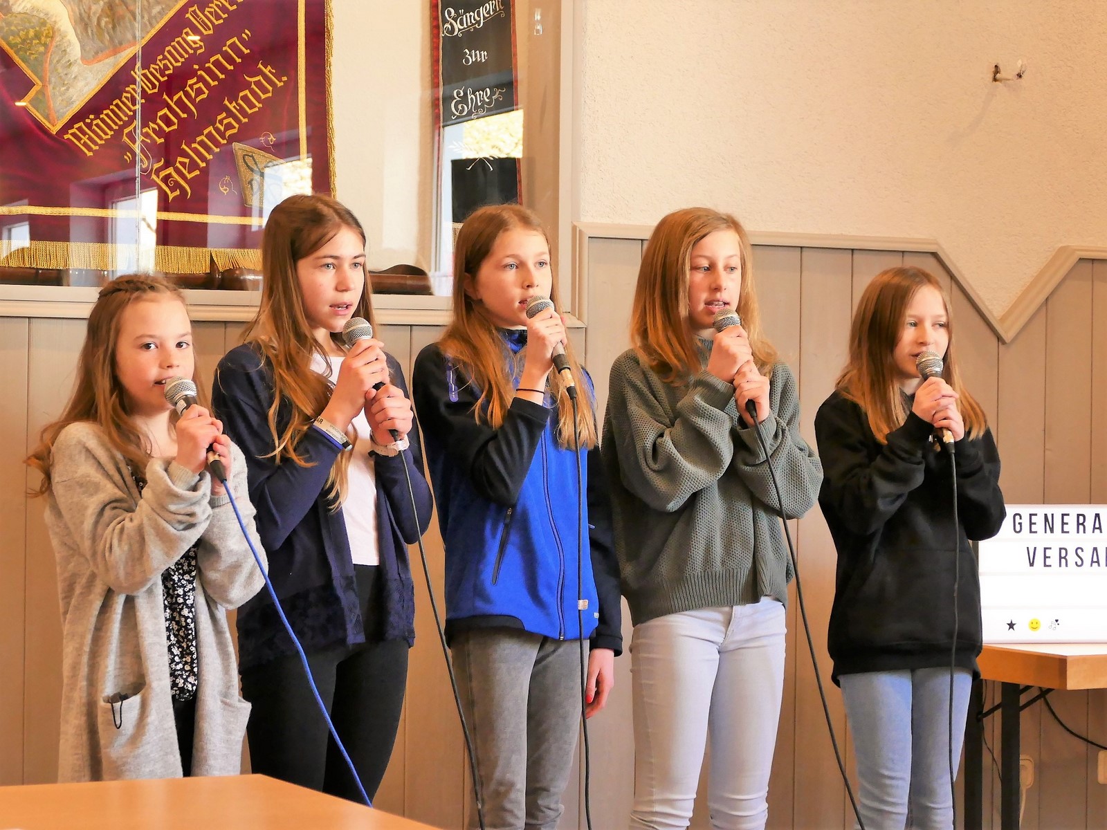 Vertreterinnen vom Jugendchor würdigten unter Leitung ihres Chorleiters Rainer Kogelschatz die Geehrten mit dem Lied “Wer wenn nicht wir“ von Wincent Weiss. Sehr zur Freude aller im Saal. Großer Applaus ließ die Kinderaugen erstrahlen.