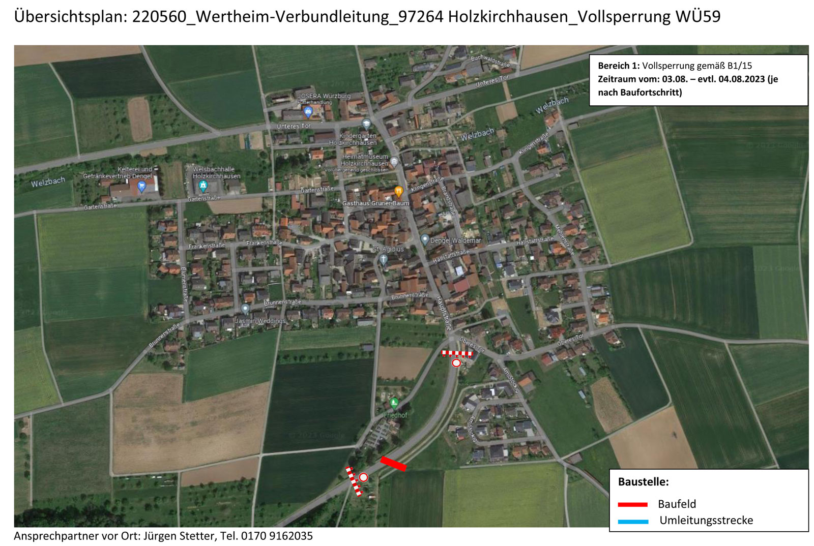 Von Donnerstag, 03.08.2023 bis Freitag, 04.08.2023 wird die Kreisstraße WÜ 59 zwischen Holzkirchhausen und Neubrunn wegen Straßenbauarbeiten im Bereich Holzkirchhausen ganztägig in beiden Richtungen gesperrt. Das berichtet die Verkehrsunternehmens-Verbund Mainfranken GmbH. Während der Sperrung wird die Omnibuslinie 470 umgeleitet. Die Haltestelle „Holzkirchhausen“ wird währenddessen nicht bedient.