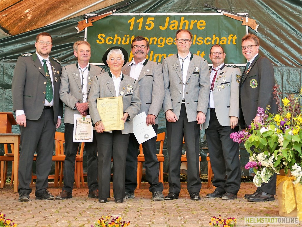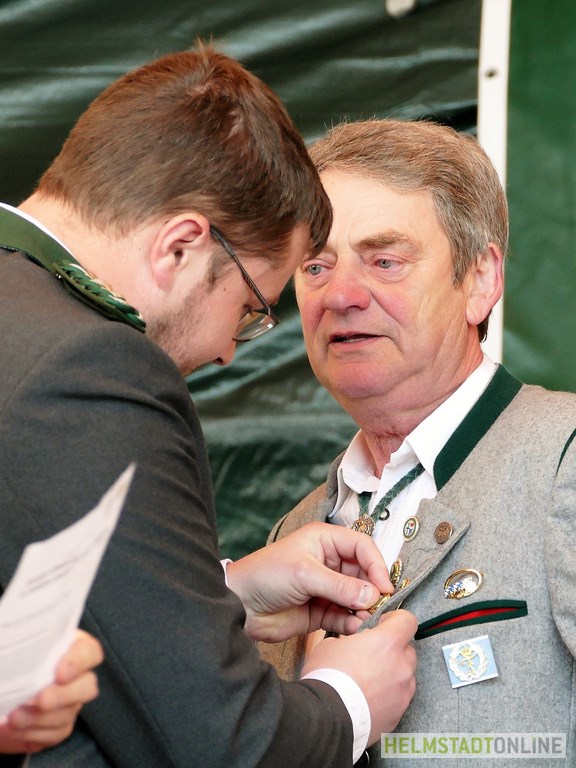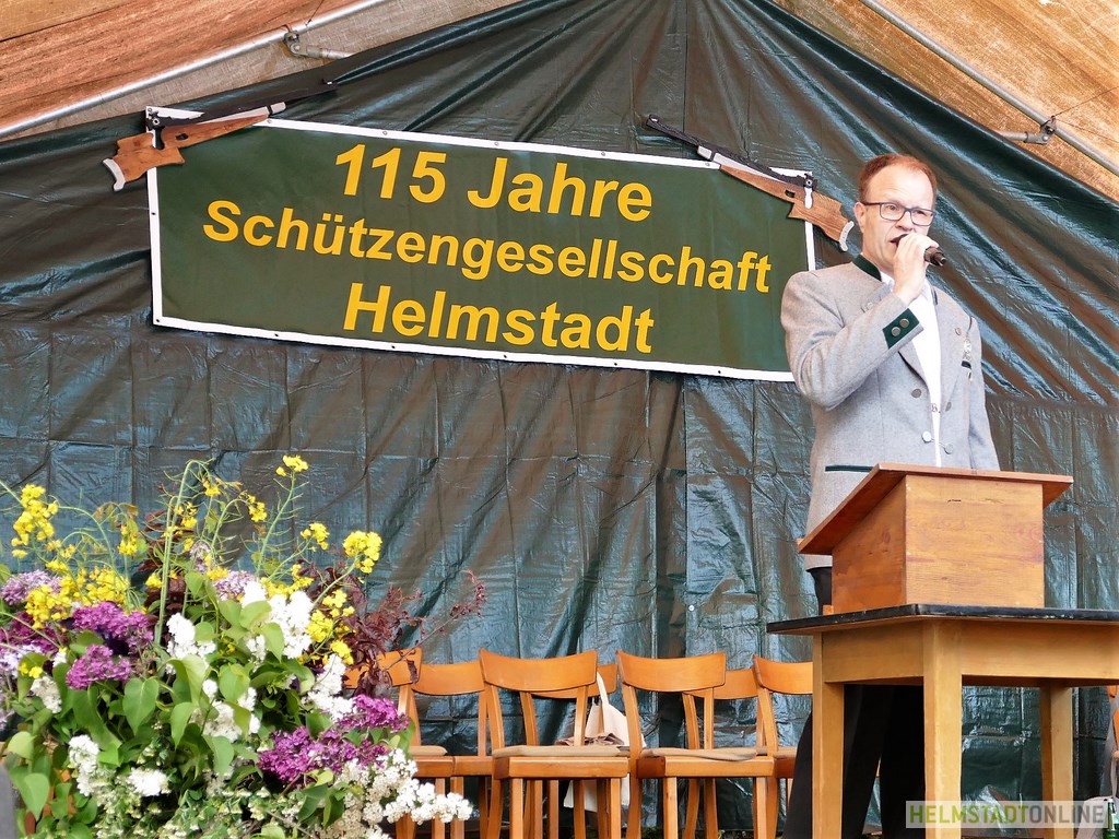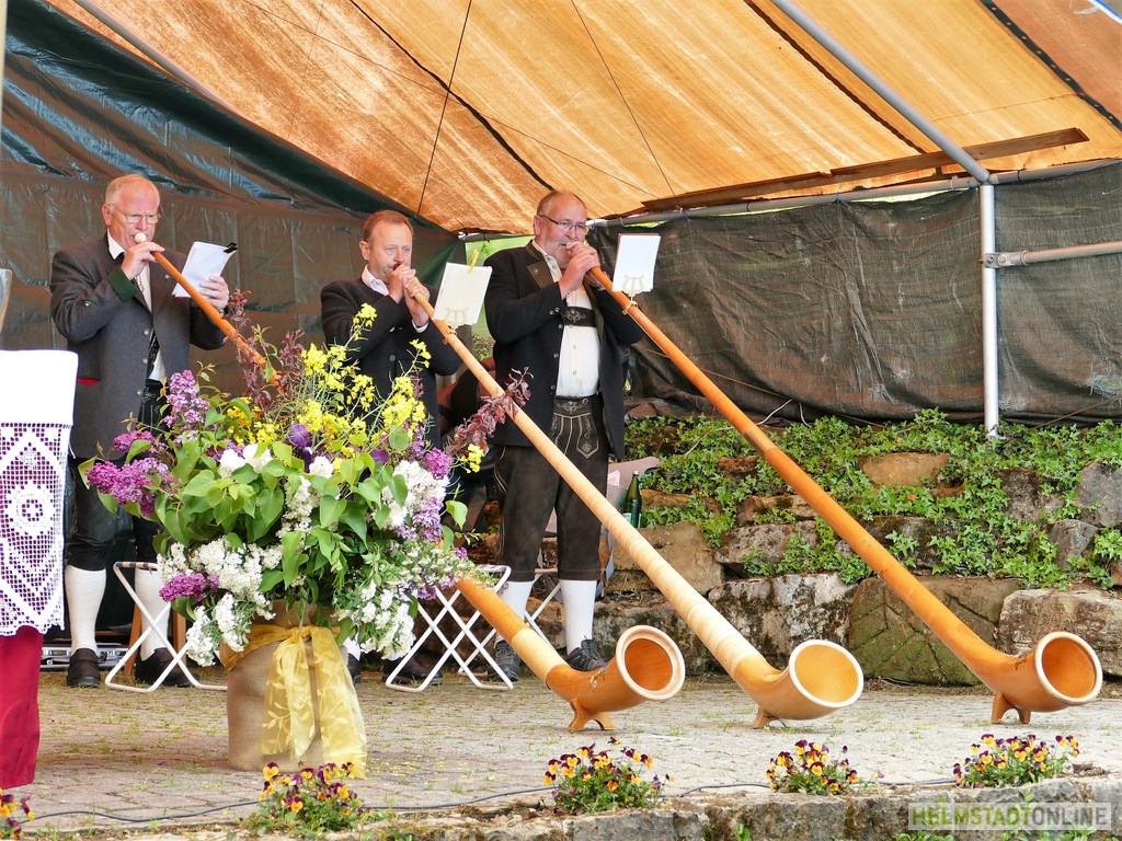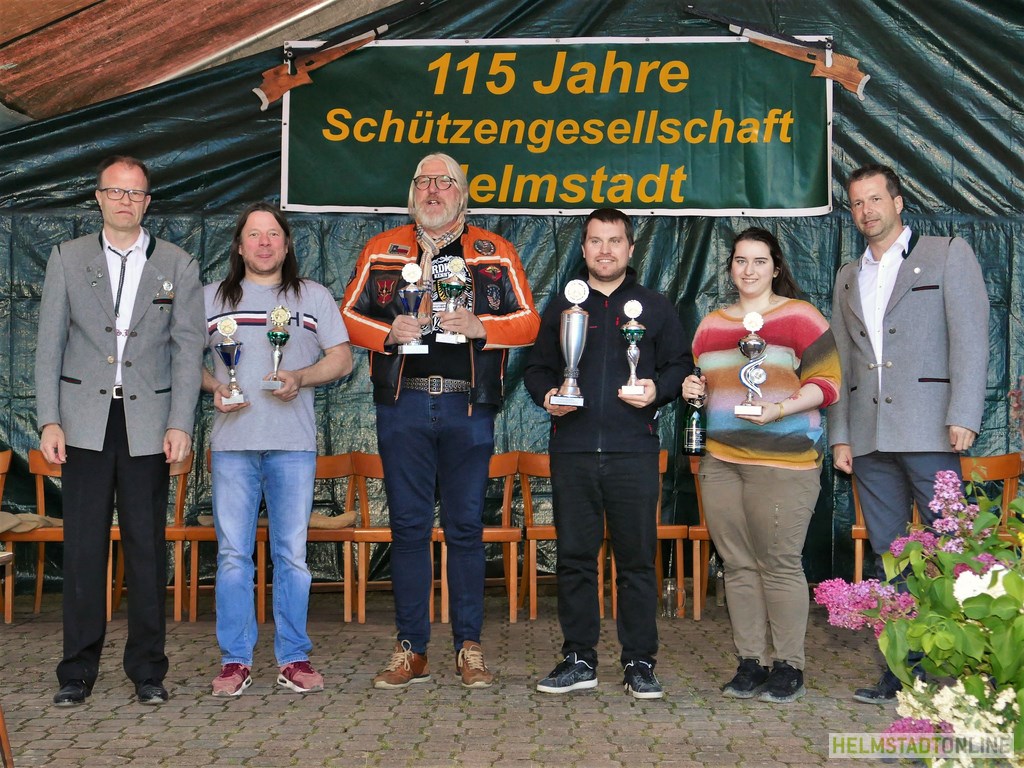 Am Wochenende feiert die Schützengesellschaft Helmstadt ihr 115-jähriges Bestehen. Beim Zeltgottesdienst am Sonntag spielte das Alphorntrio aus Röllbach im Spessart. Im Zuge dessen wurden drei Vereinsmitglieder geehrt. Diese waren Fred Wander (Protektorabzeichen BSSB), Vinzenz Baunach (Gauehrennadel in Gold) und Marianne Mennig (Gauehrennadel in Gold und Ehrenschützenmeisterin). Später wurden die Gewinner des Vereinsschießen bekannt gegeben und die Pokale überreicht.