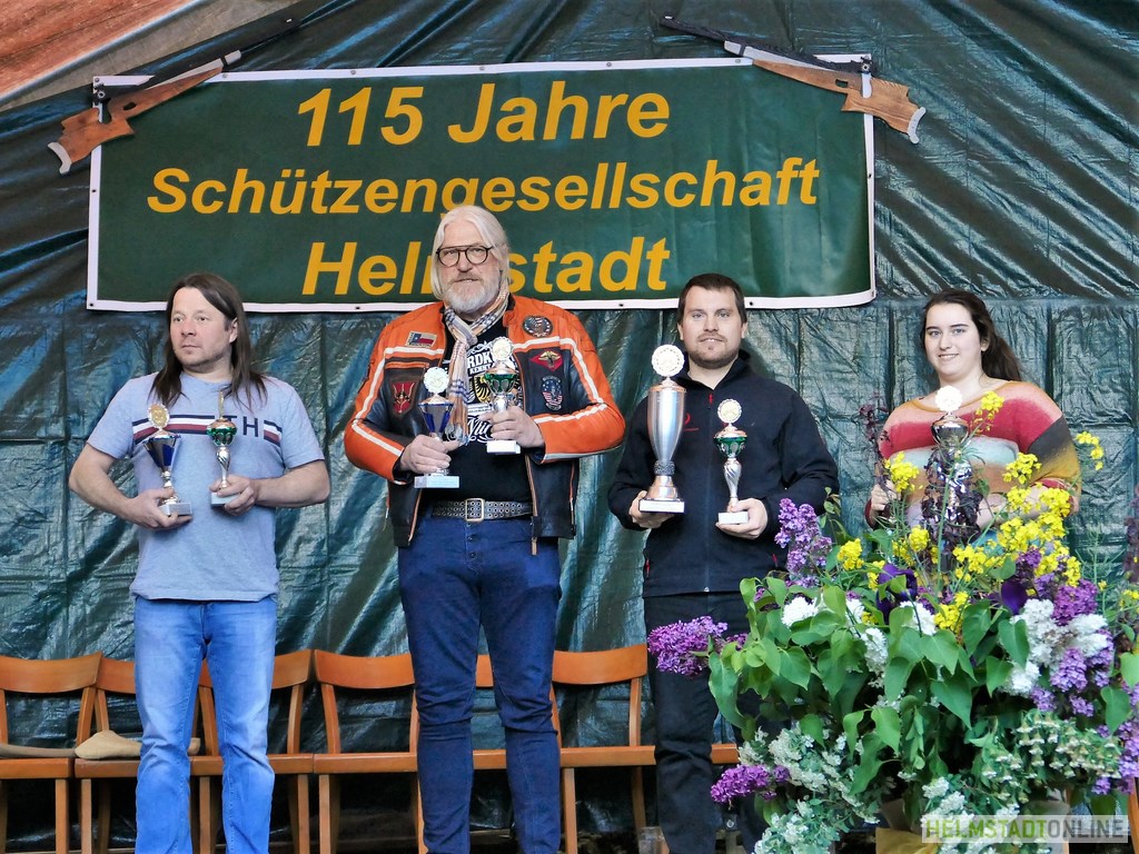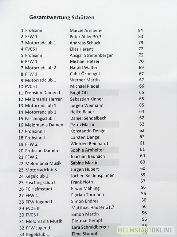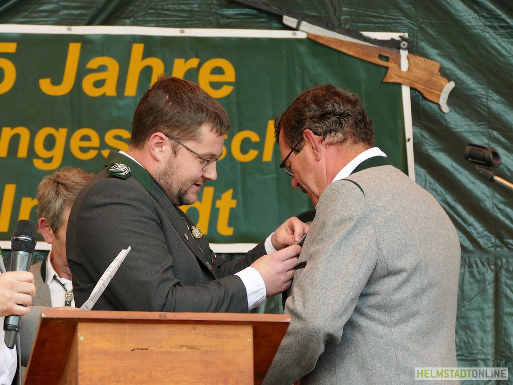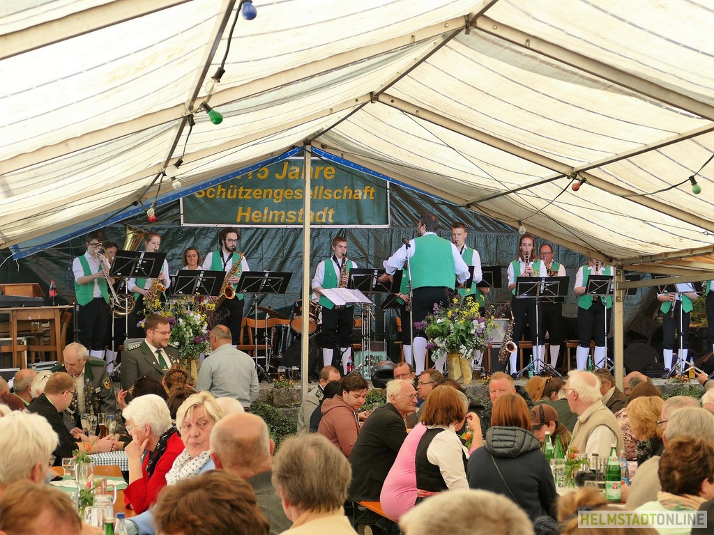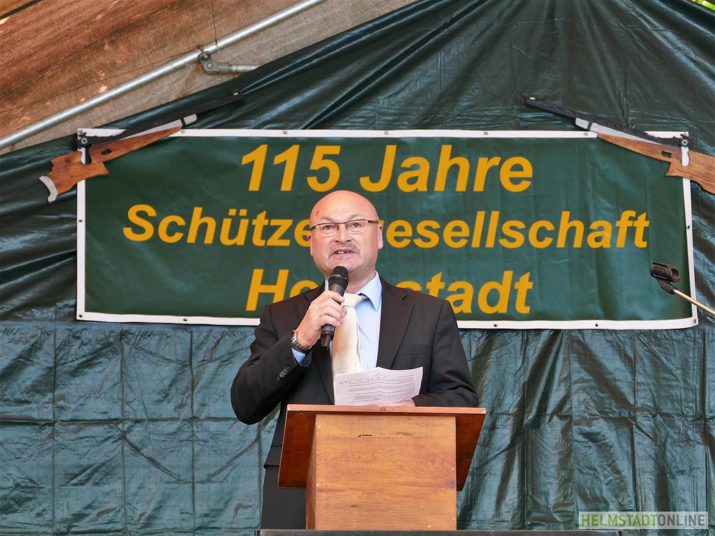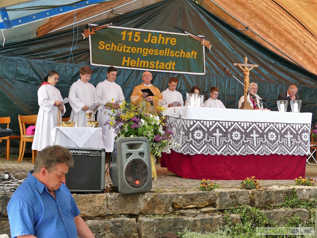 Am Wochenende feiert die Schützengesellschaft Helmstadt ihr 115-jähriges Bestehen. Beim Zeltgottesdienst am Sonntag spielte das Alphorntrio aus Röllbach im Spessart. Im Zuge dessen wurden drei Vereinsmitglieder geehrt. Diese waren Fred Wander (Protektorabzeichen BSSB), Vinzenz Baunach (Gauehrennadel in Gold) und Marianne Mennig (Gauehrennadel in Gold und Ehrenschützenmeisterin). Später wurden die Gewinner des Vereinsschießen bekannt gegeben und die Pokale überreicht.