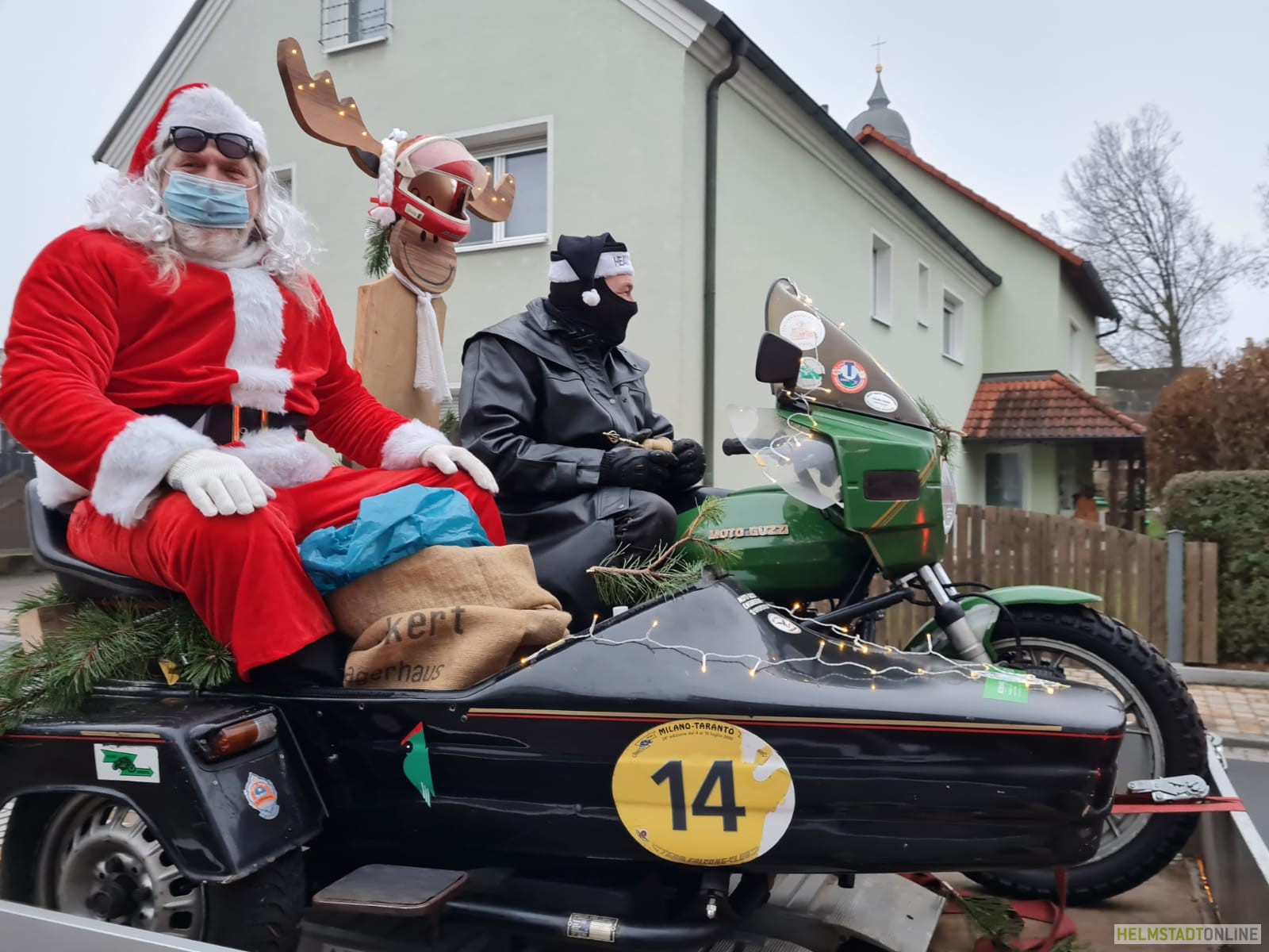 Der Nikolaus kommt doch, obwohl die Rentiere in Quarantäne sind. Unter diesem Motto flitzte der Nikolaus vom Motorradclub Helmstadt durch die Straßen Helmstadts. Zwar nicht mit Rentieren und Schlitten, jedoch auf dem Motorrad unterwegs, beschenkte er die Kinder mit einer kleinen Überraschung. Fazit: Klasse Aktion, herzlichen Dank!