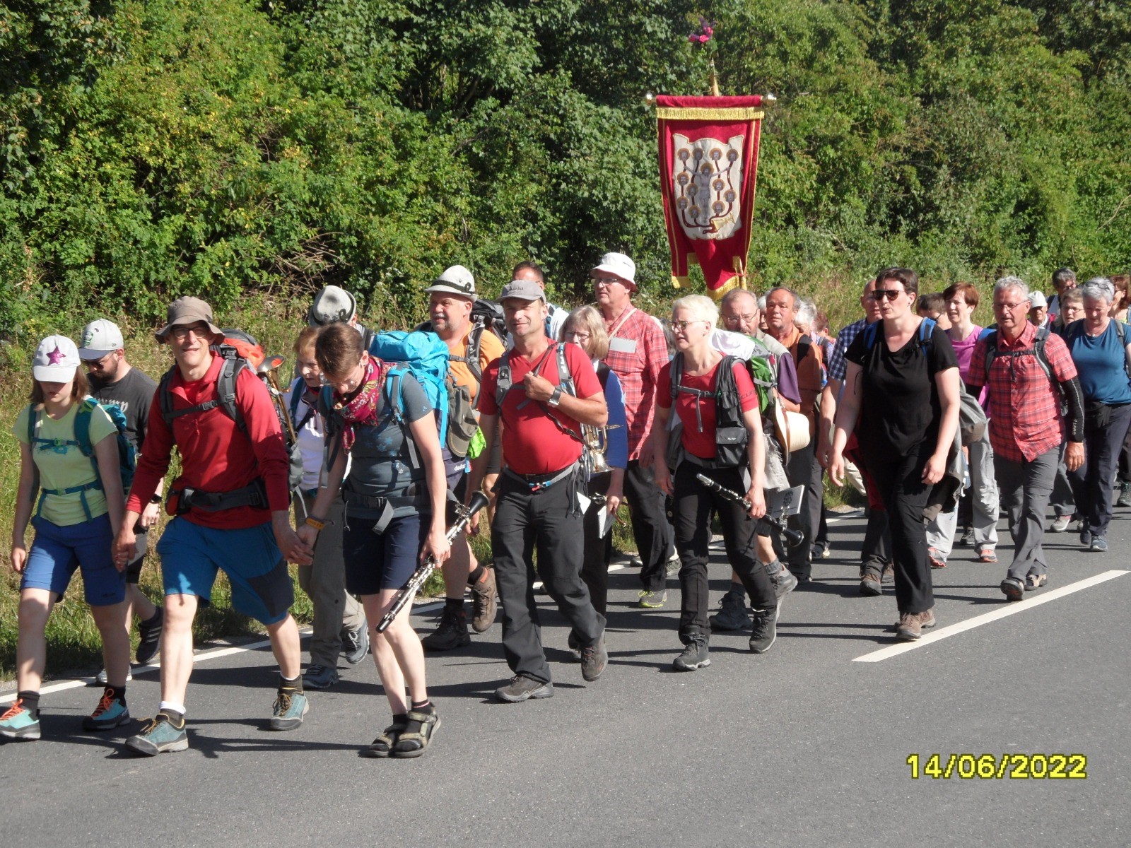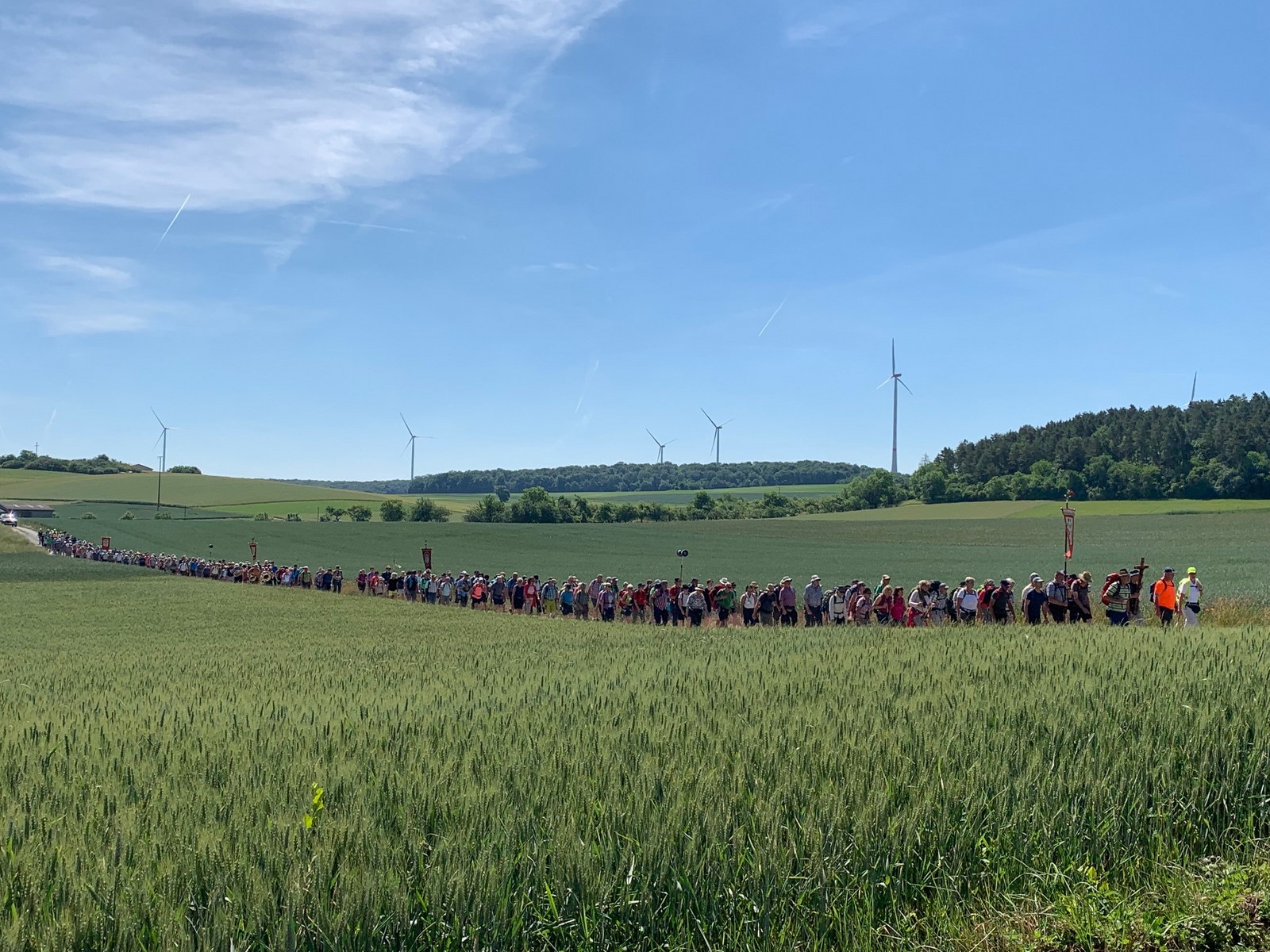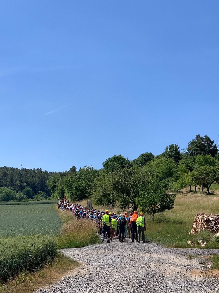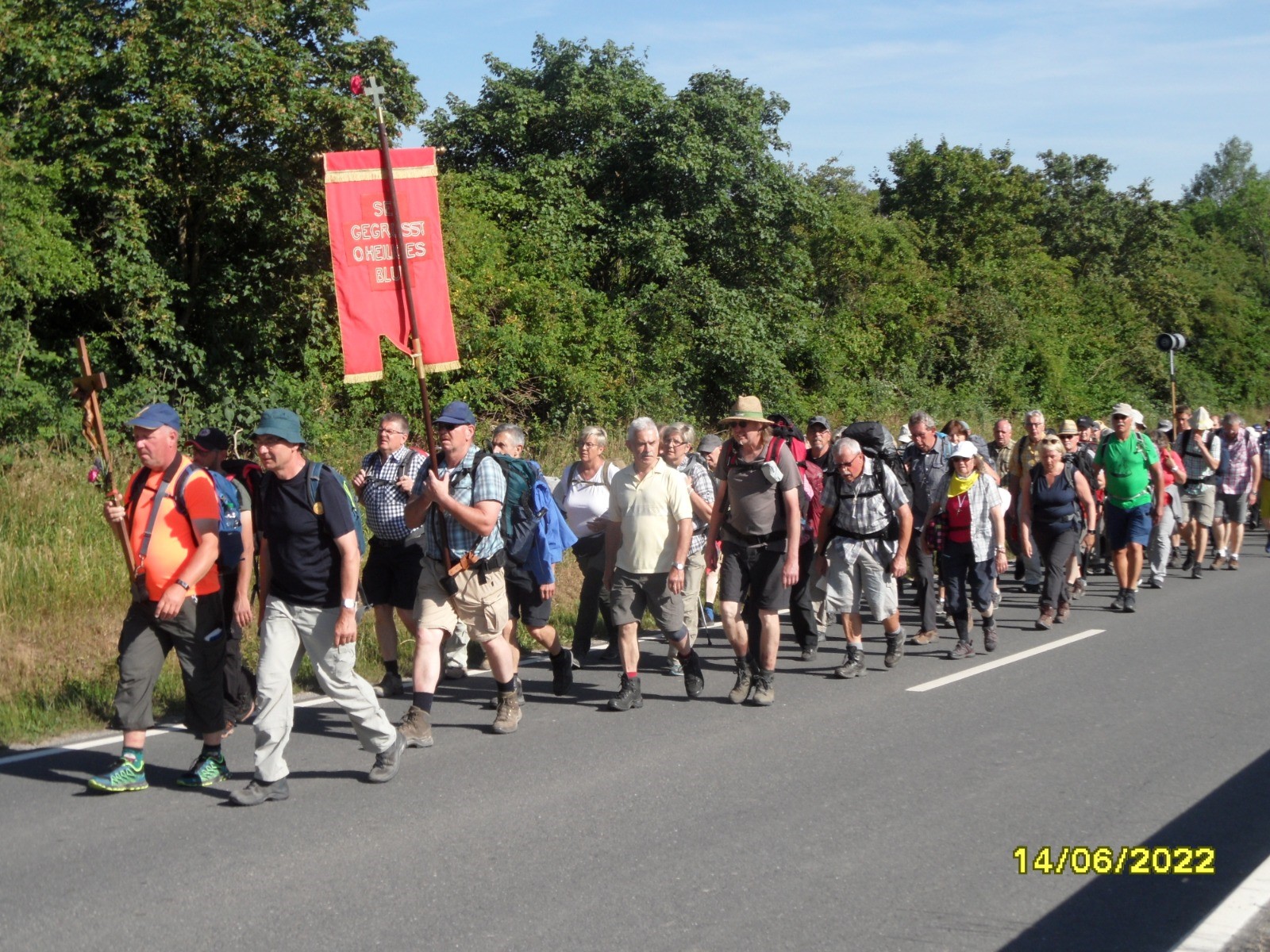 Auf dem Weg zum Hl. Blut nach Walldürn machten ca. 440 Wallfahrer am Dienstag 14.06.2022 in Helmstadt Rast.