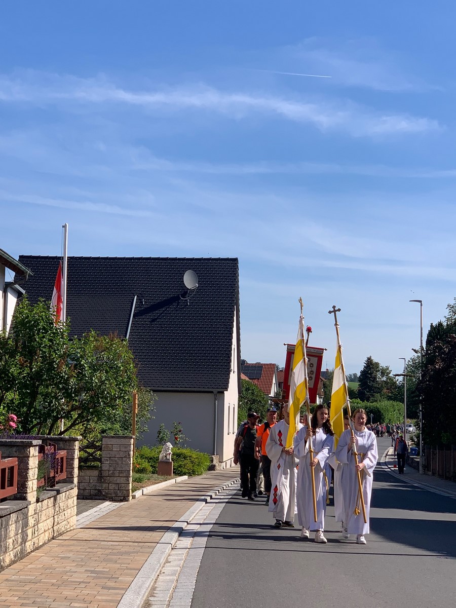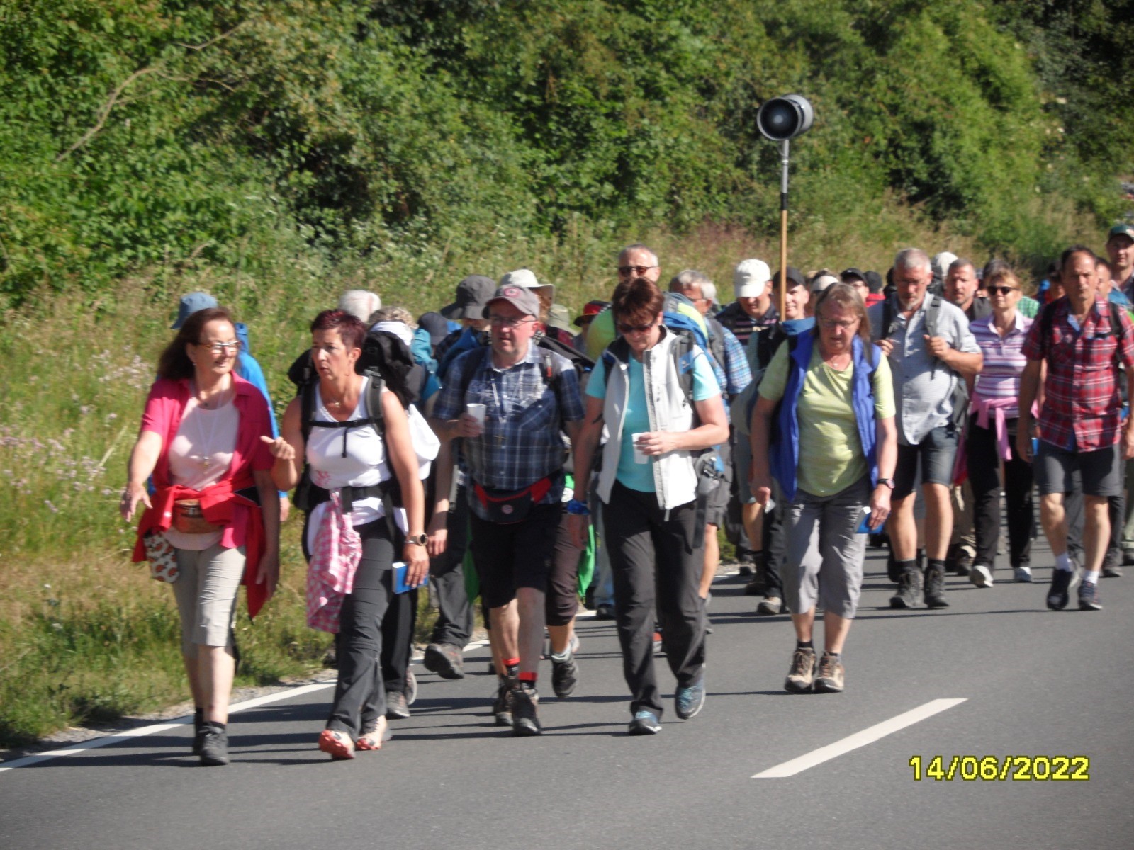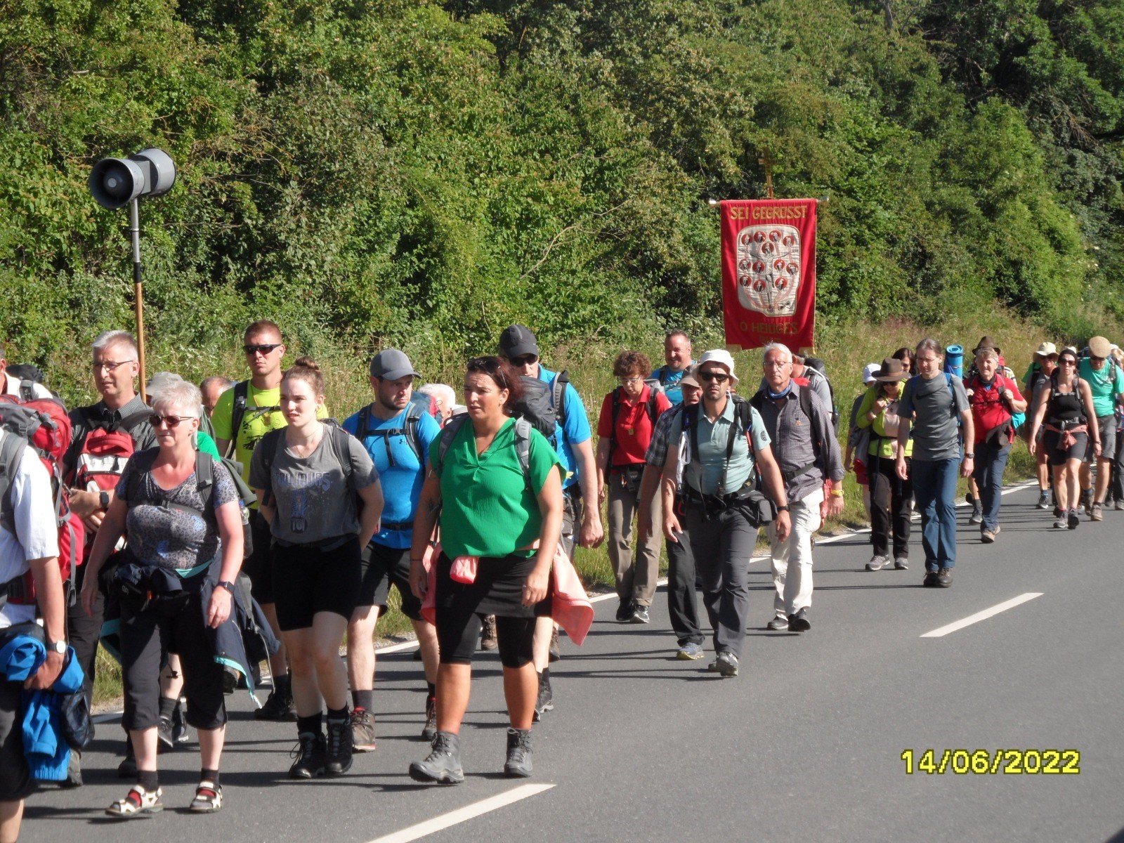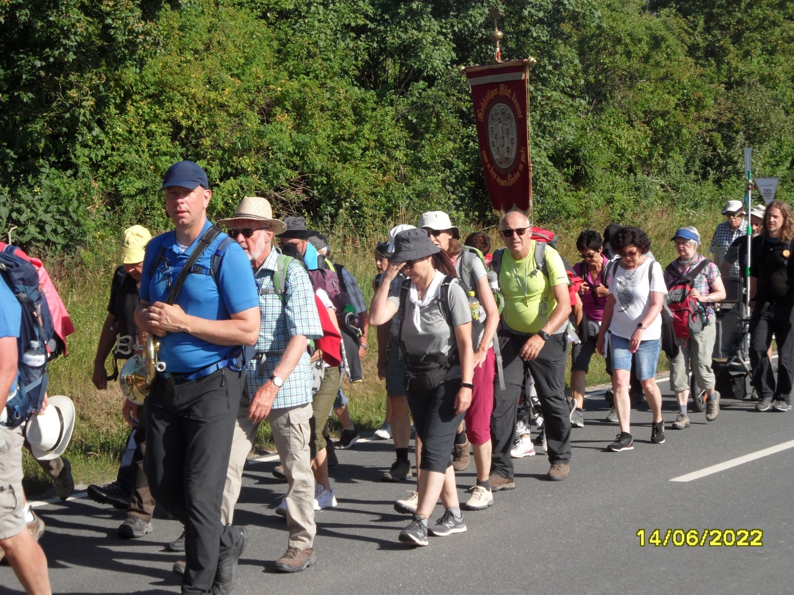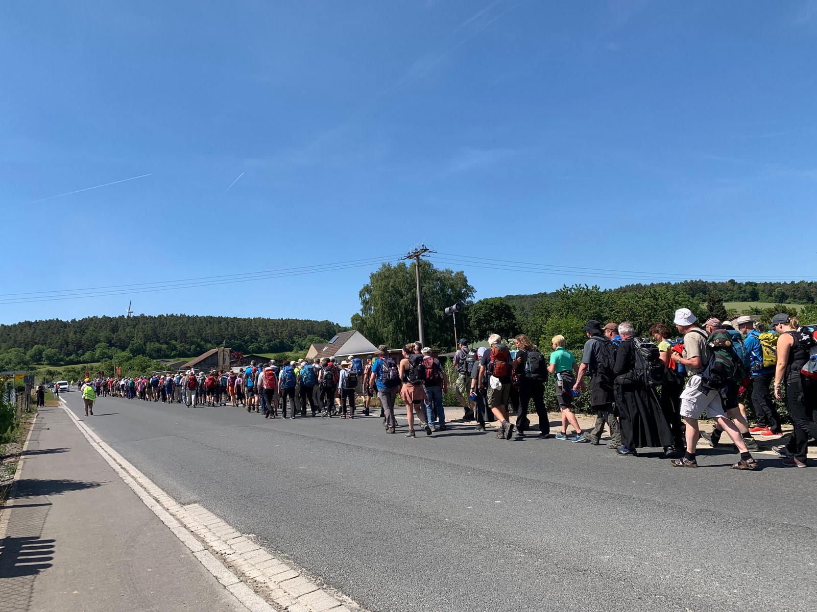 Auf dem Weg zum Hl. Blut nach Walldürn machten ca. 440 Wallfahrer am Dienstag 14.06.2022 in Helmstadt Rast.