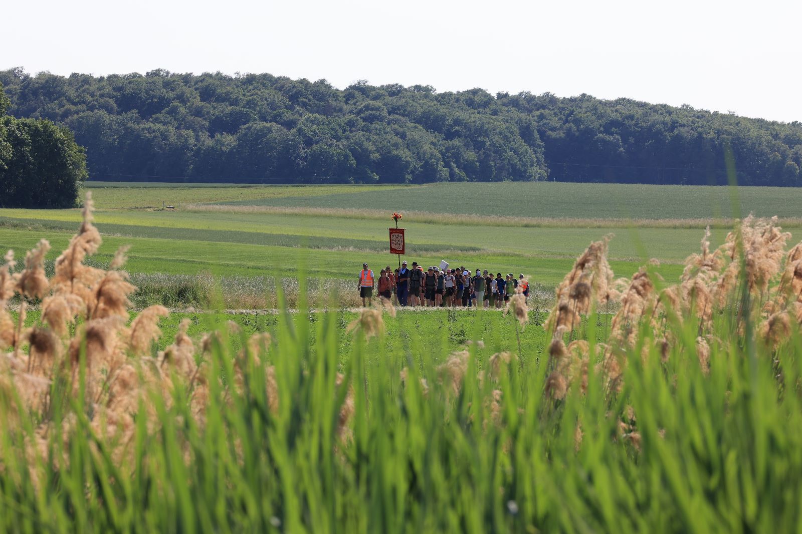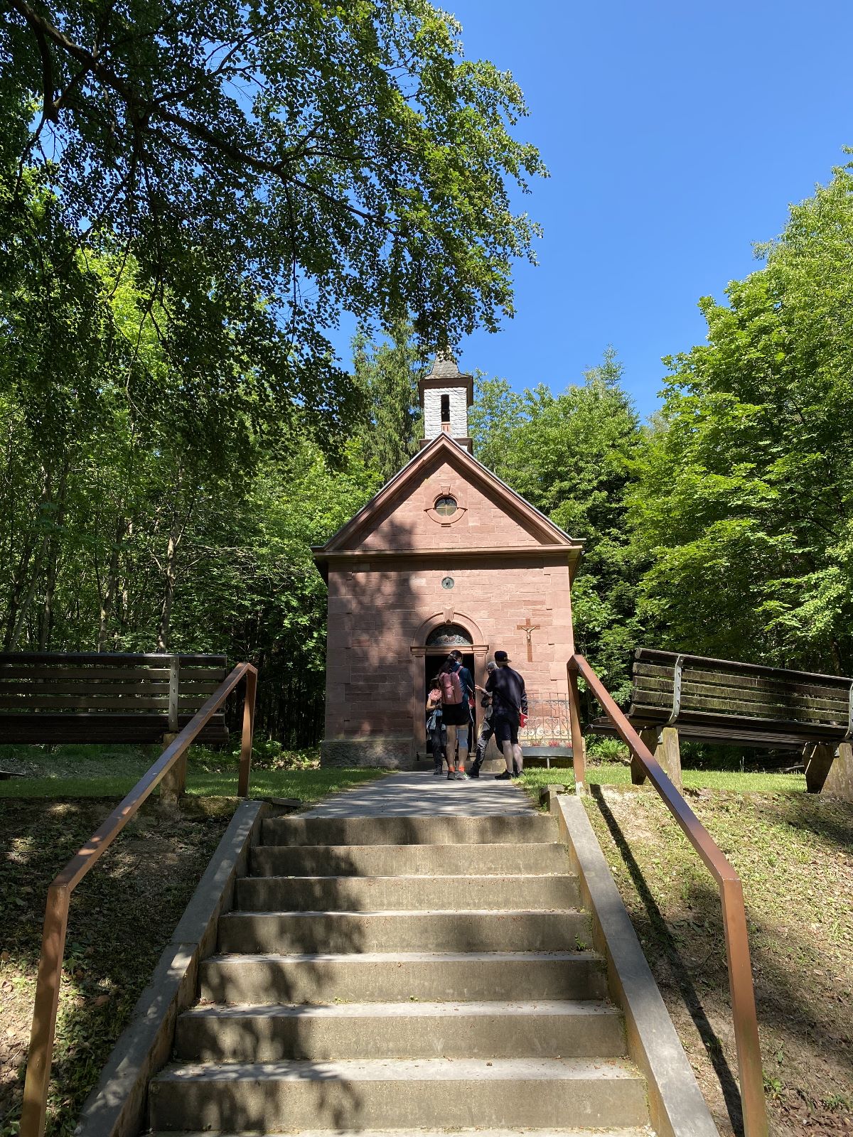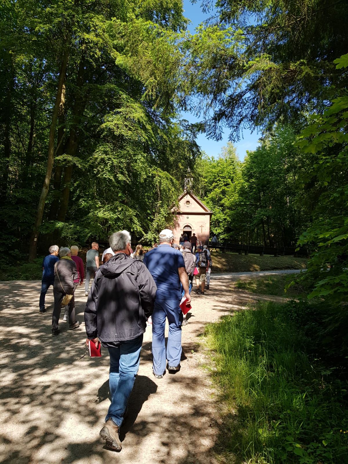 Am Sonntag früh um 6:30 Uhr war die Pilgermesse für Helmstadt. Hier nahmen auch einige in aller Frühe in Helmstadt bereits aufgebrochene Personen teil. Um 9:00 Uhr dann der Gang zur Kapelle am Märzenbrünnlein. Sehr erfreulich war auch hier, dass eine stattliche Anzahl dafür extra angereiste Helmstadter uns begleiteten. Auf dem Weg zur Kapelle wurde der Kreuzweg gebetet und dort eine berührende Marien-Andacht gehalten.