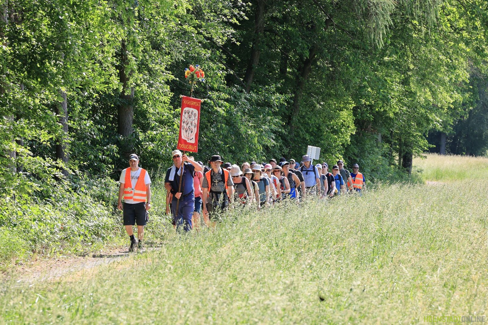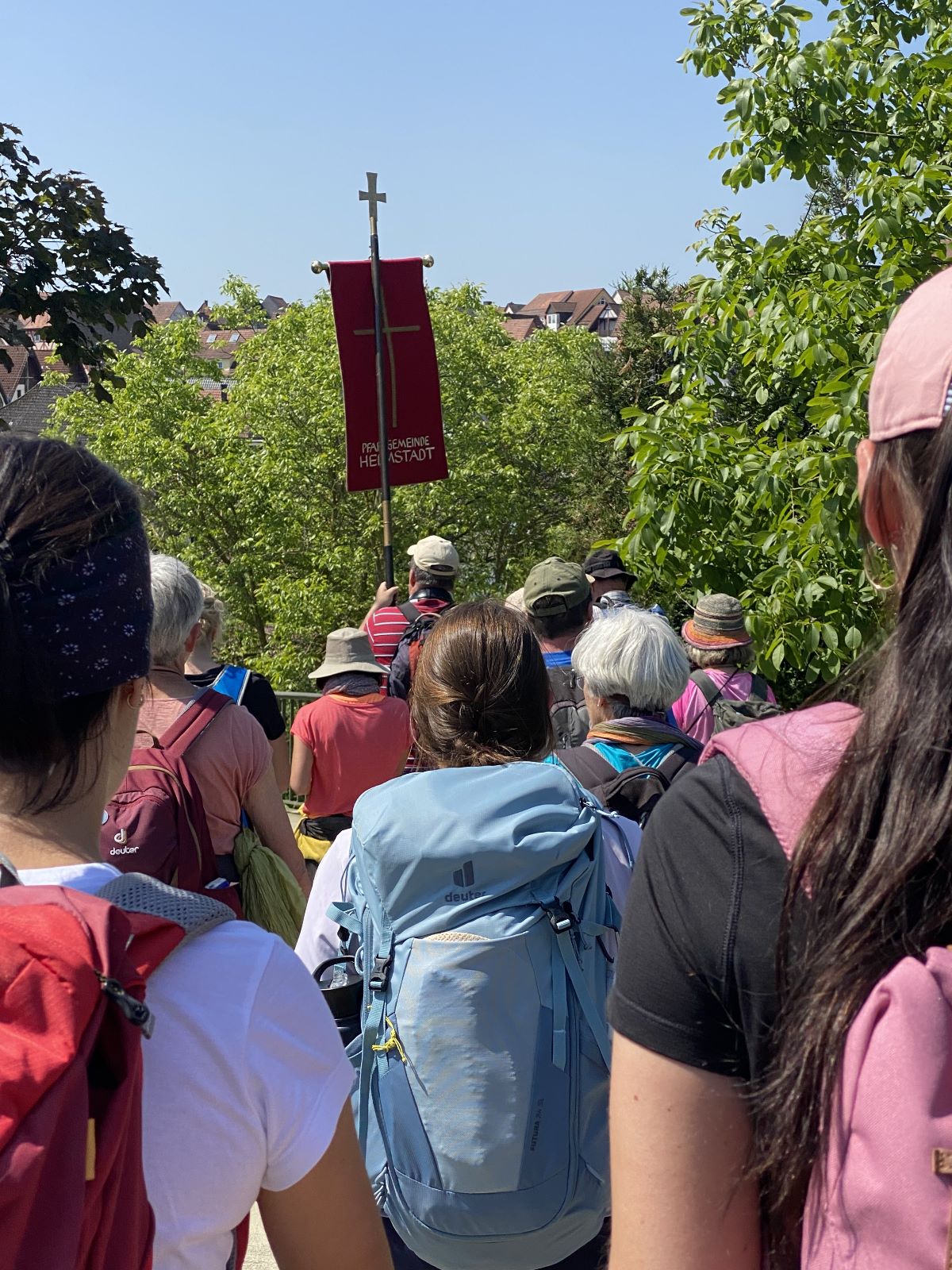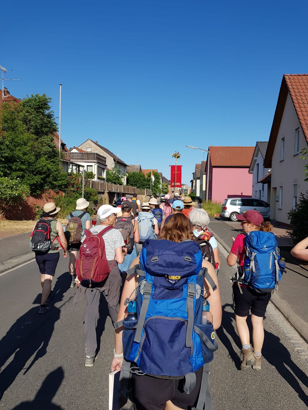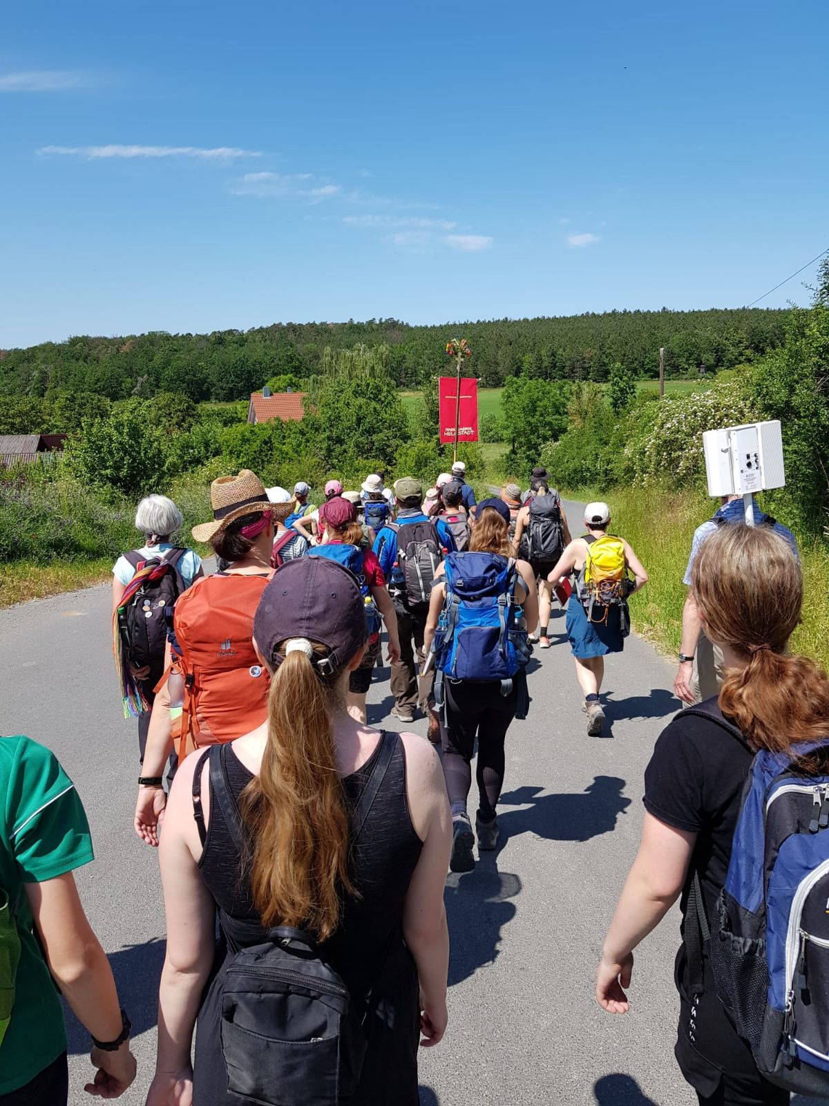Um 13:00 Uhr wurde unsere Pilgergruppe von Diakon Tobias Eckert verabschiedet und wir traten den etwa 15 km langen Heimweg nach Helmstadt an. Am Anger wurden wir von Pfarrer Grönert und 5 Ministranten um 18:00 Uhr erwartet und zur Kirche geleitet.